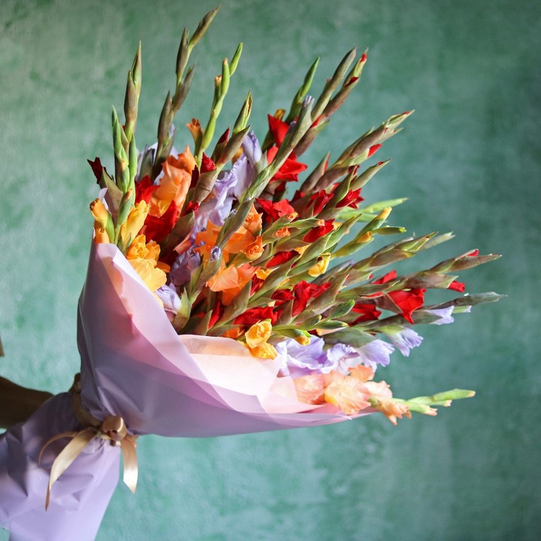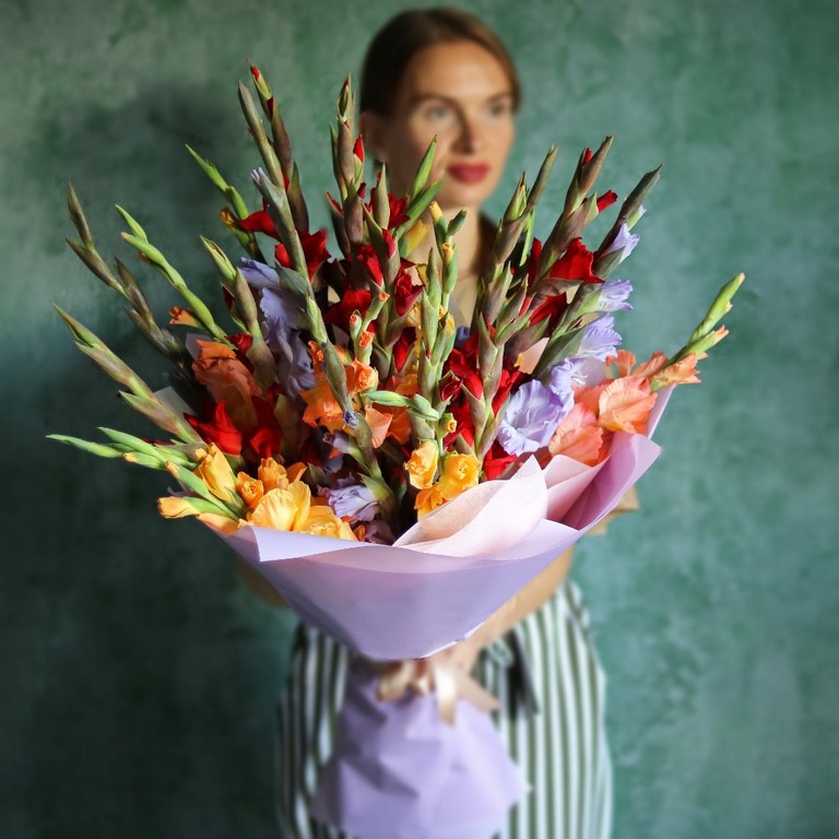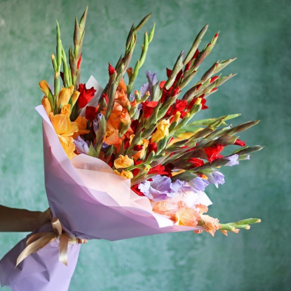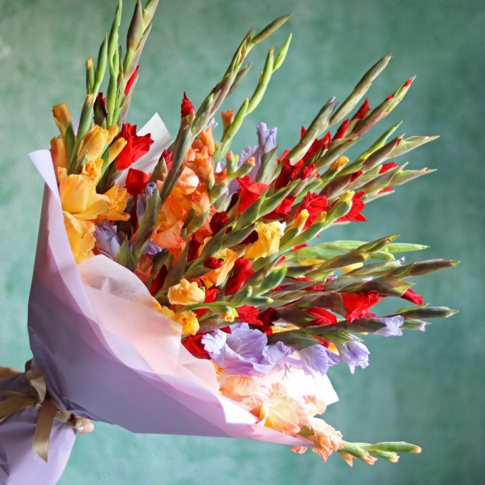 Букет из разноцветных гладиолусов. Вы можете выбрать любое количество цветов указанное в перечне к данному букету.