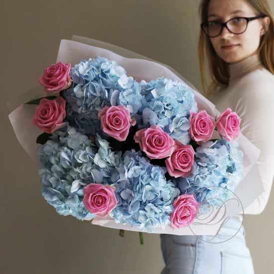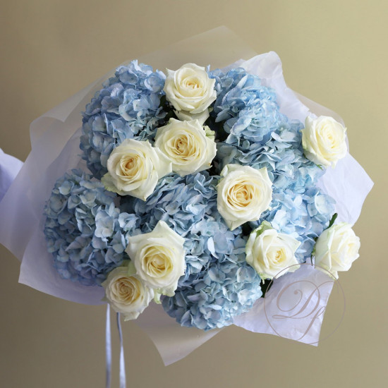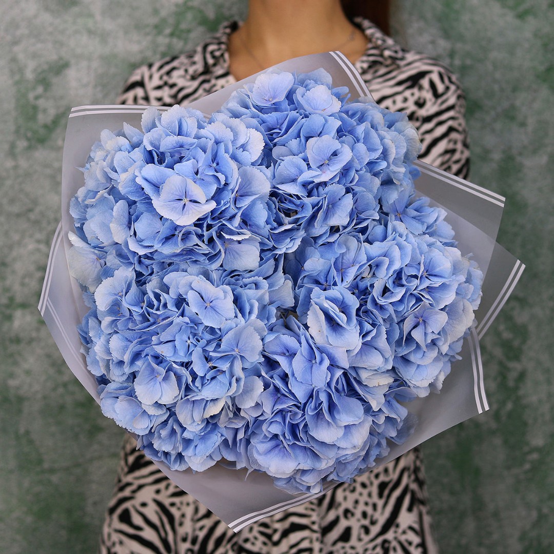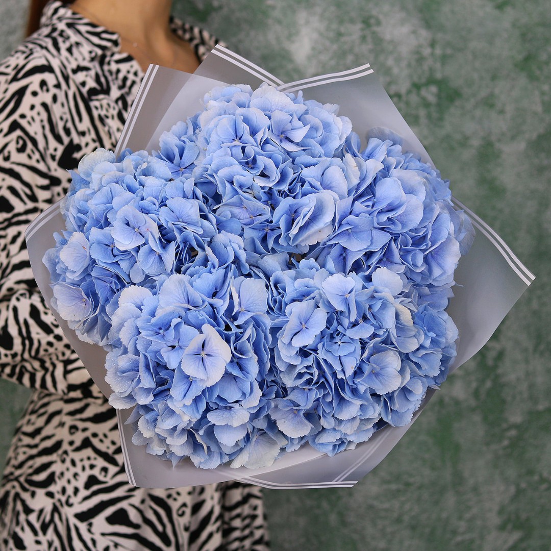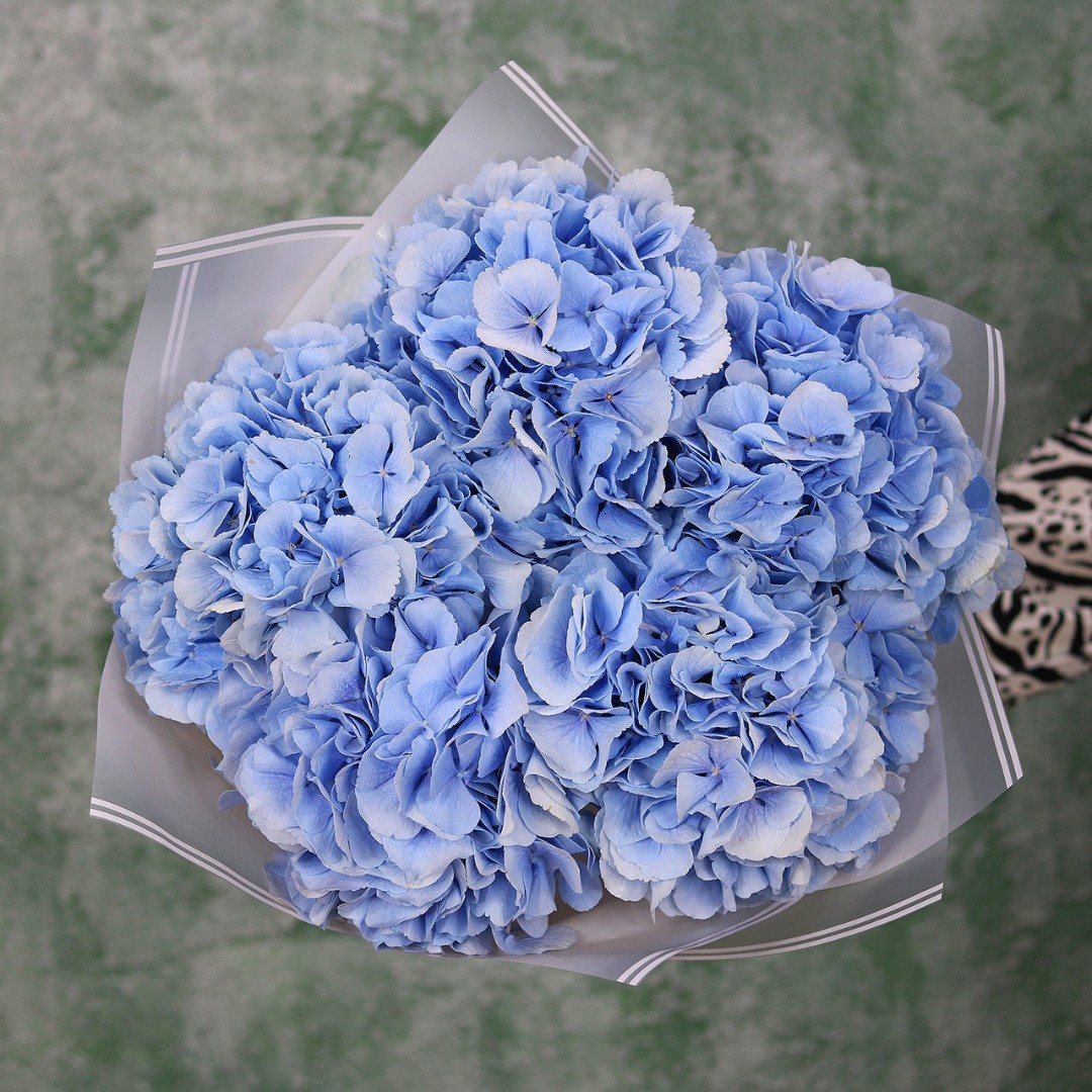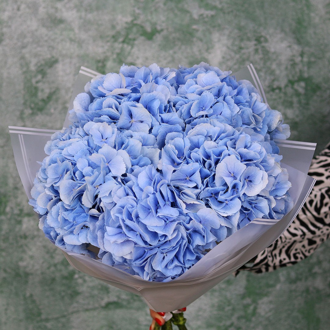 Букет из голубой Голландской гортензии. Вы можете выбрать любое количество цветов указанное в перечне к данному букету.