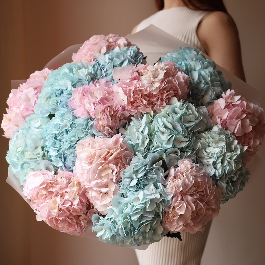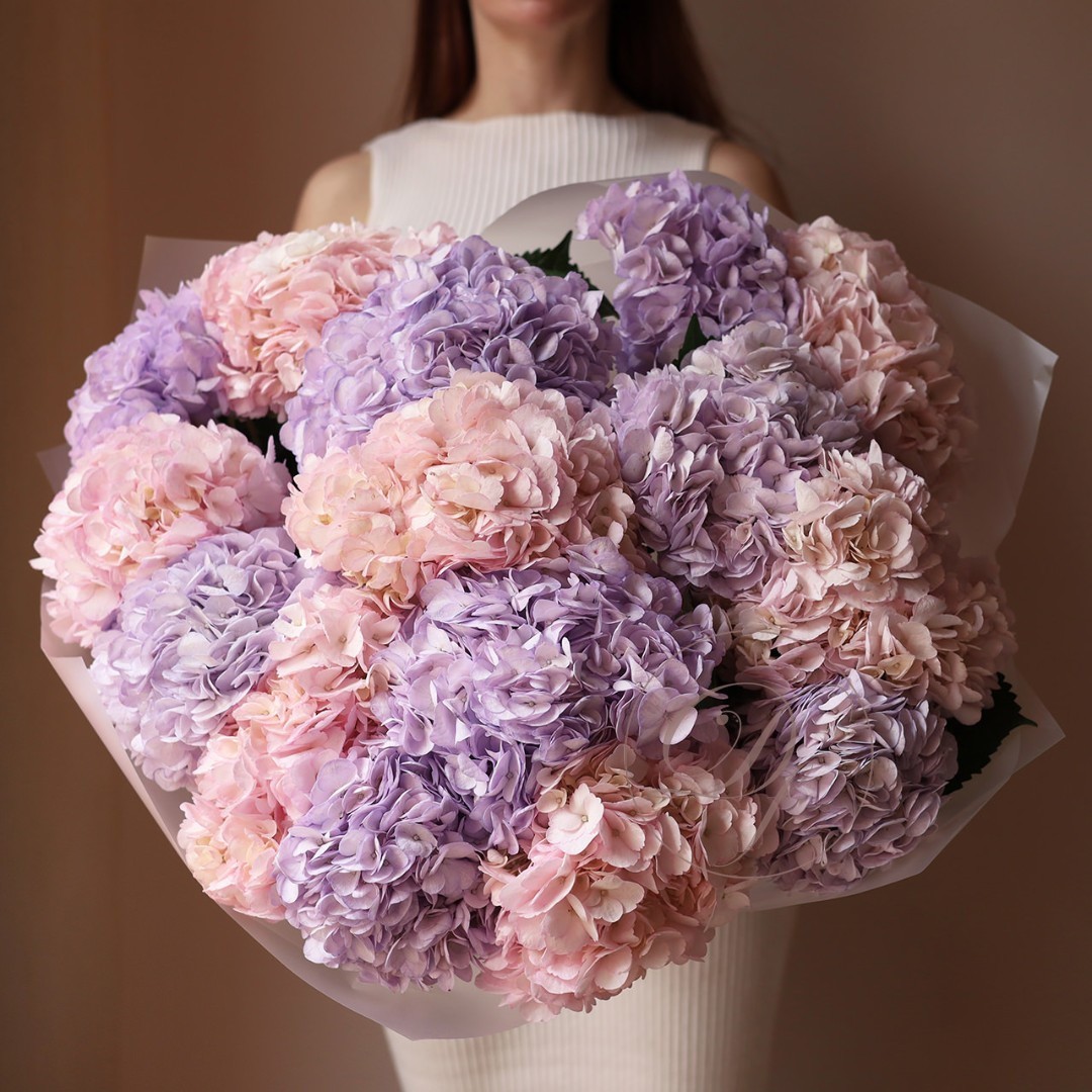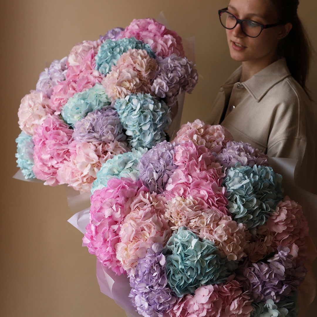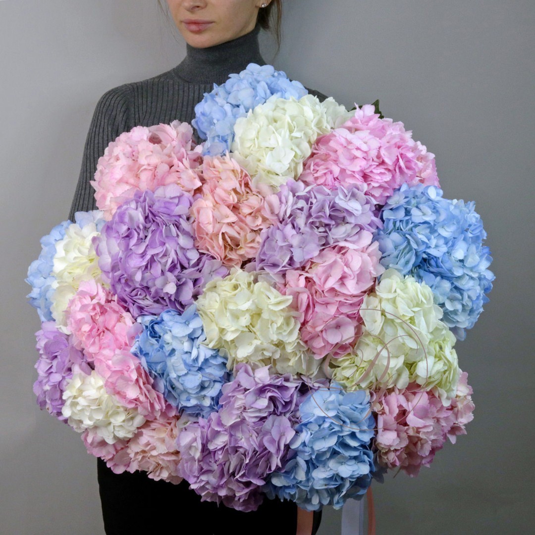 Букет из разноцветных гортензий. Вы можете выбрать любое количество цветов указанное в перечне к данному букету.