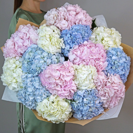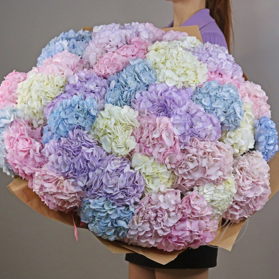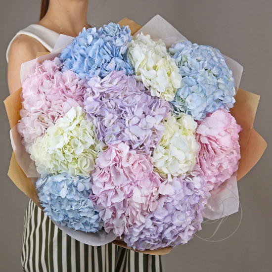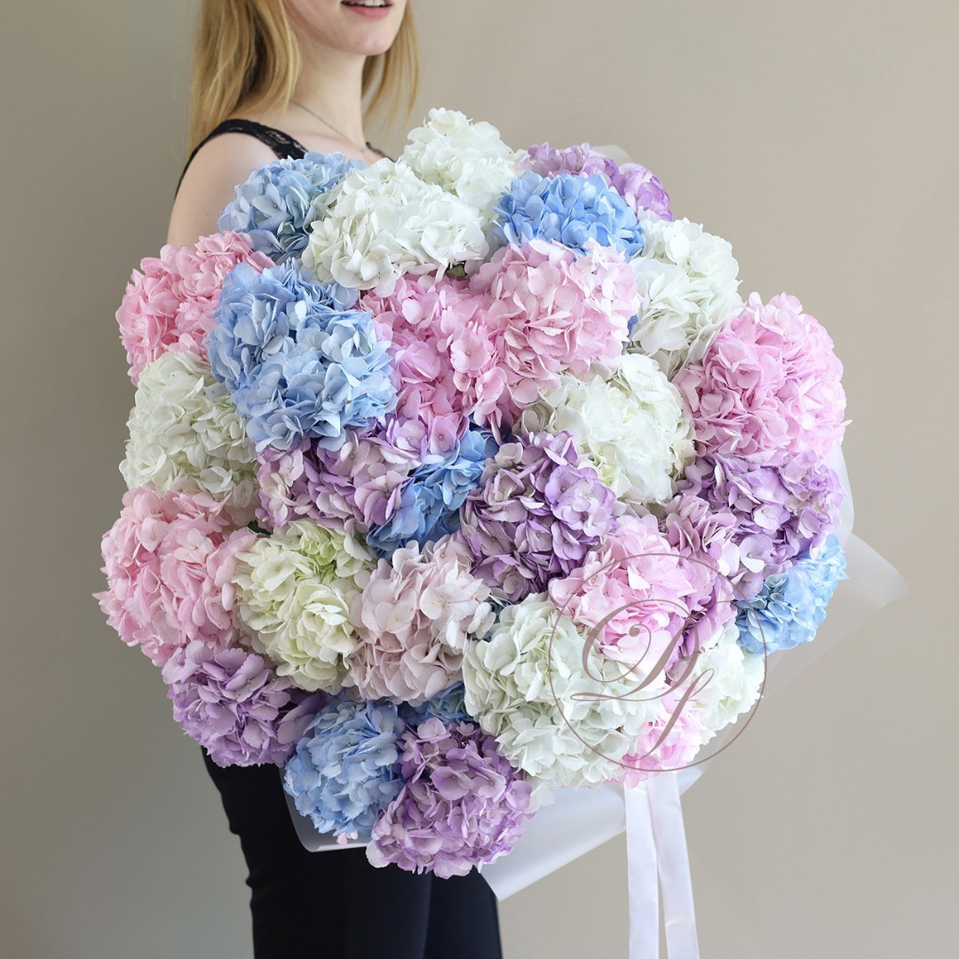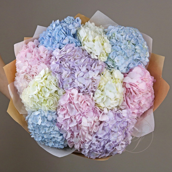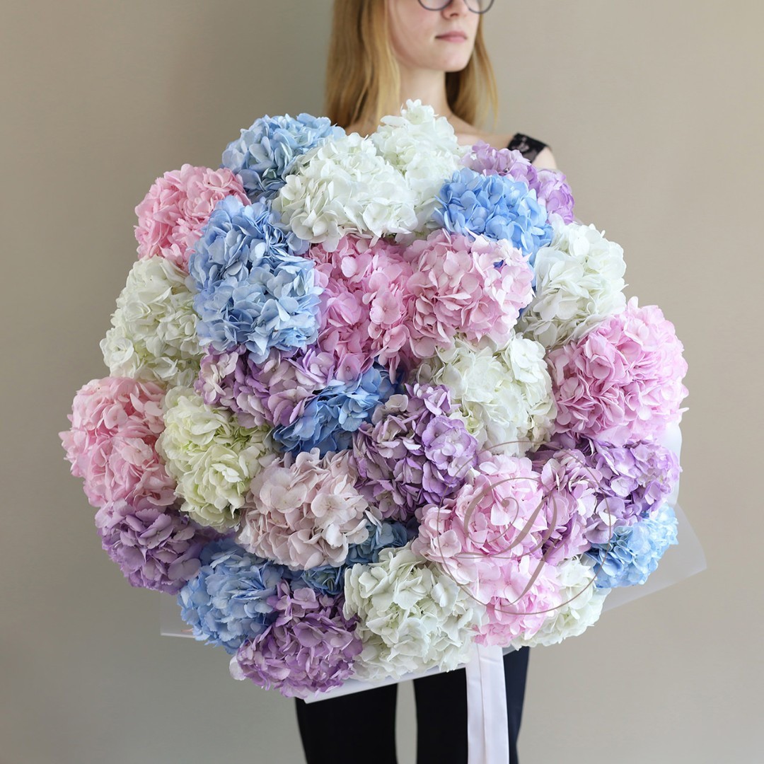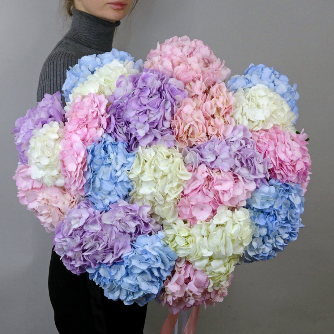 Букет из разноцветных гортензий. Вы можете выбрать любое количество цветов указанное в перечне к данному букету.
