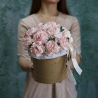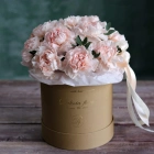 Цветы в коробках это композиции, составленные с использованием специальной губки Oasis (пиафлор) которая пропитана водой. Для того чтобы цветы дольше оставались свежими, добавляйте в нее немного воды каждый день.