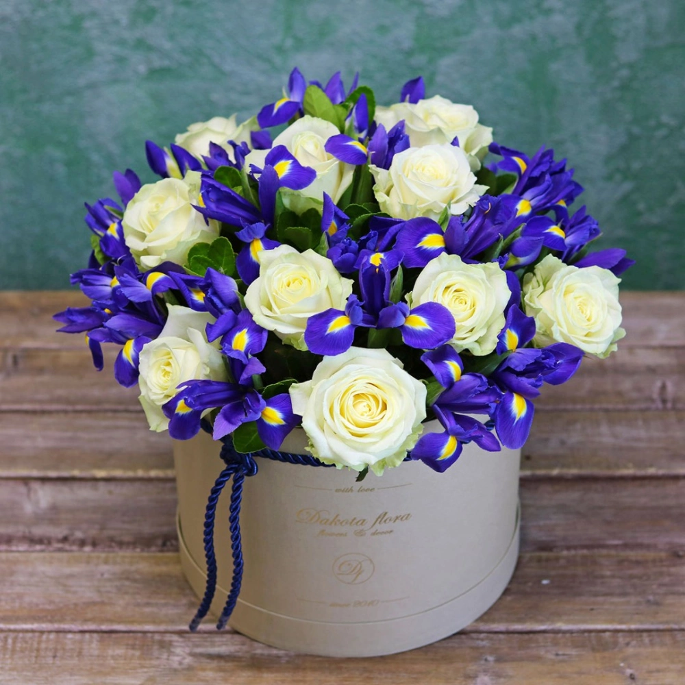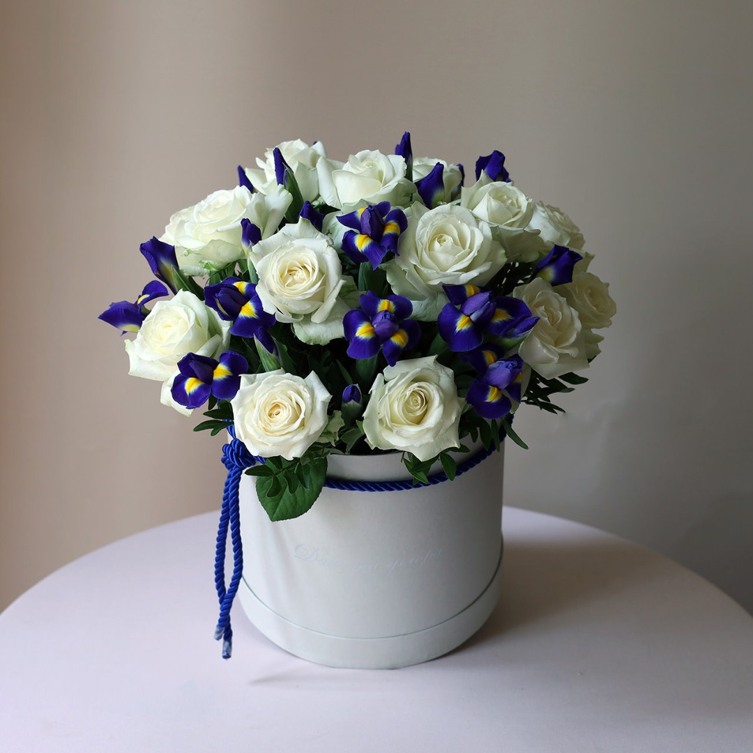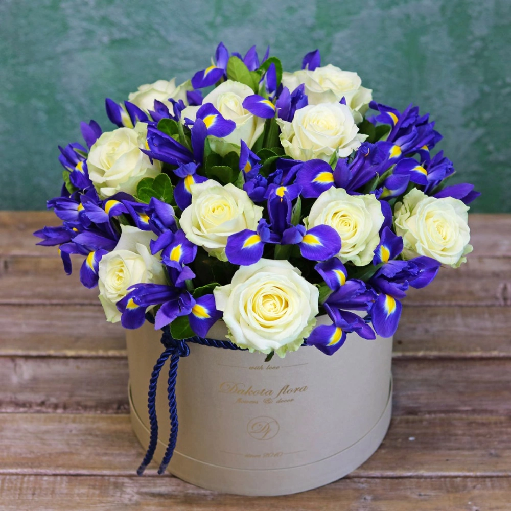 Ирисы и розы в коробке