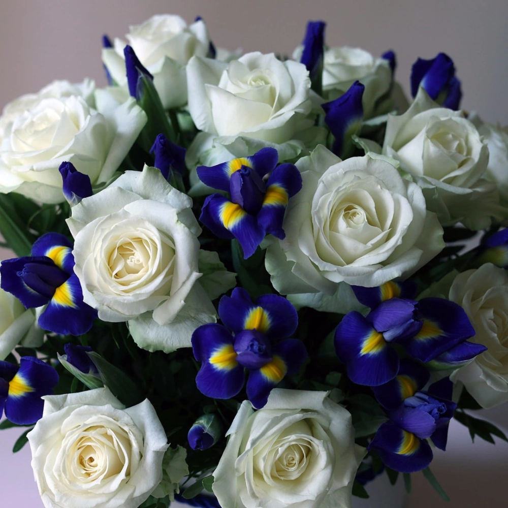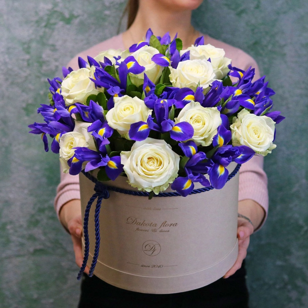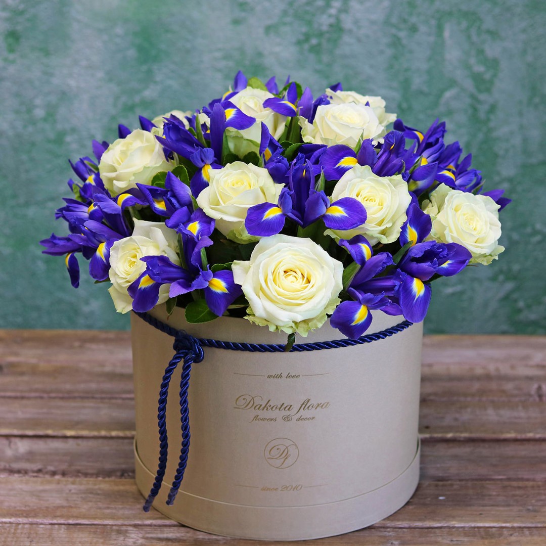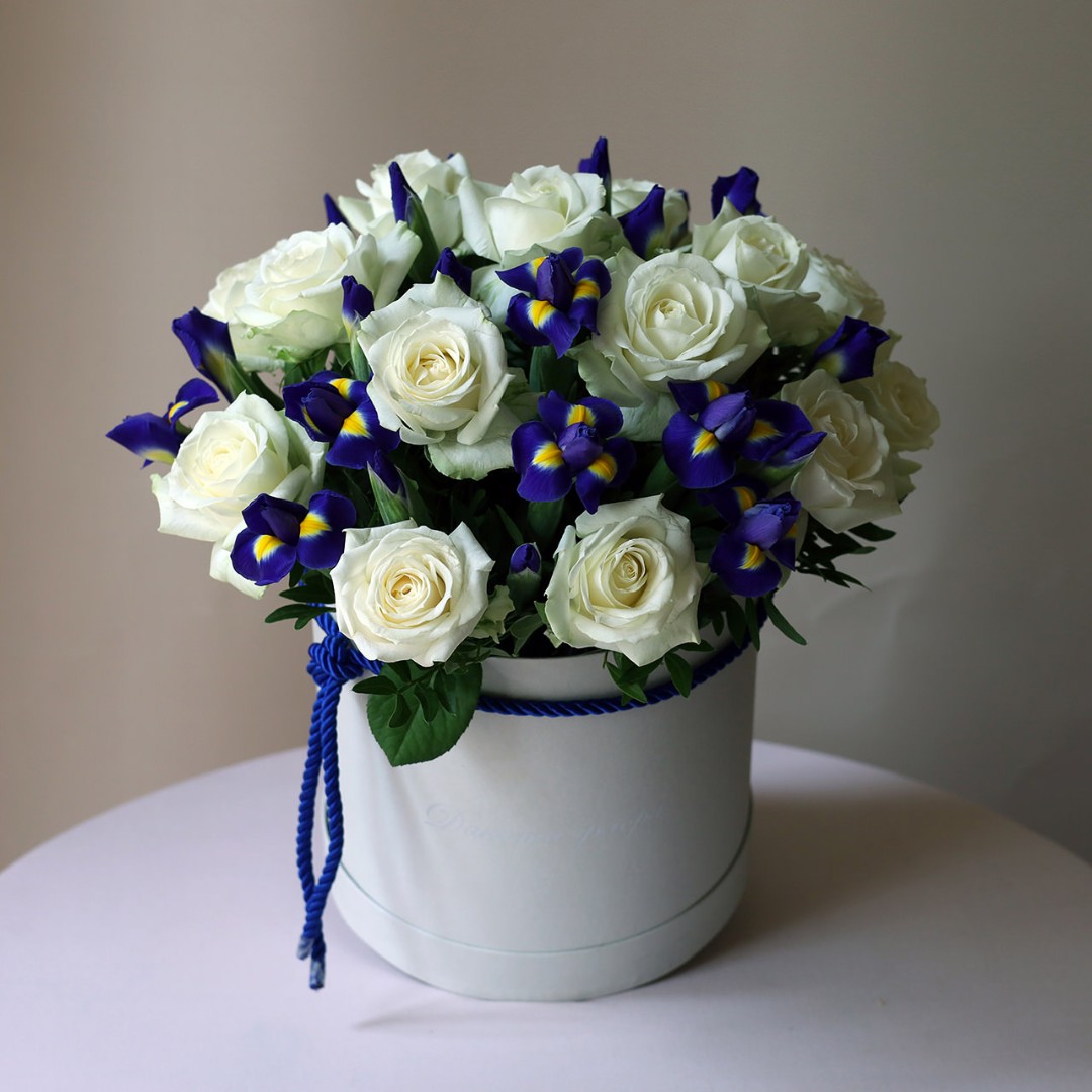 Ирисы и розы в коробке