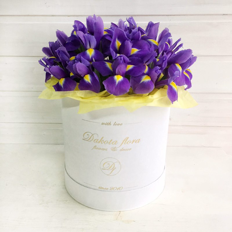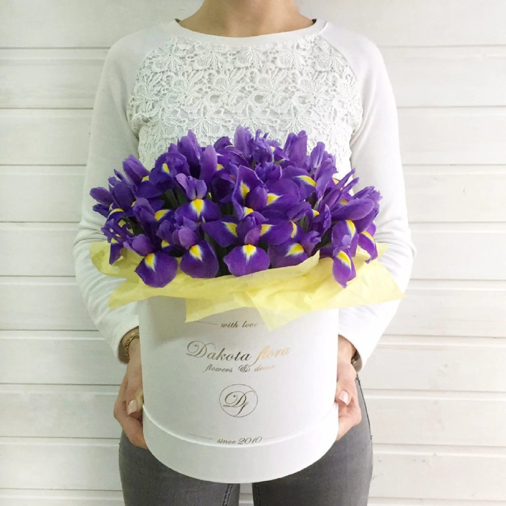Ирисы в белой коробочке