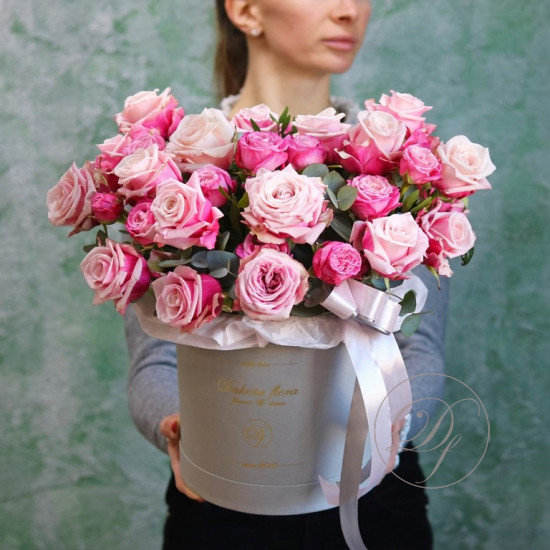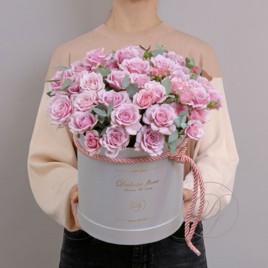 Авторская цветочная композиция в коробке. Моно букет в коробке. Интернет магазин Dakota flora. Доставка цветов по Москве и Московской области.