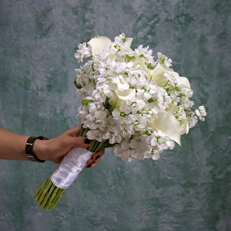 Калла и маттиола в букете