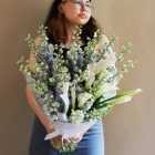 Понравился сервис в подборе букета на торжество, цветы были свежие, всё очень красиво, очень стильна...