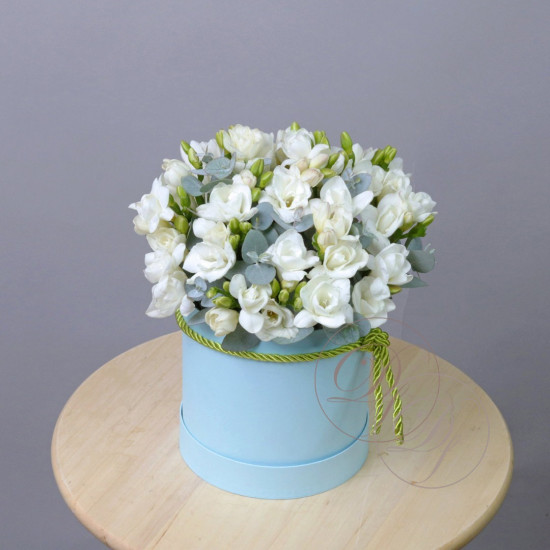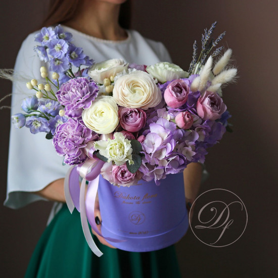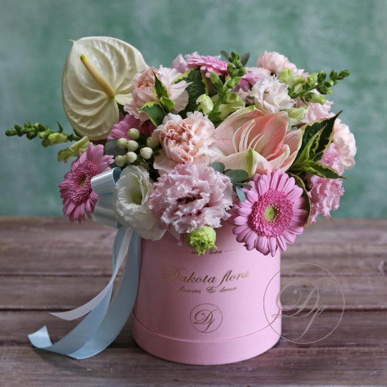 Цветы в коробках это композиции, составленные с использованием специальной губки Oasis (пиафлор) которая пропитана водой. Для того чтобы цветы дольше оставались свежими, добавляйте в нее немного воды каждый день.