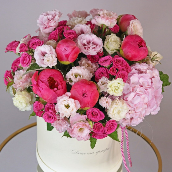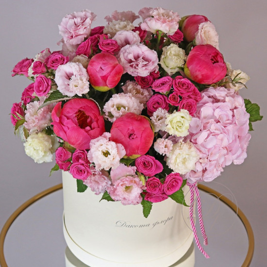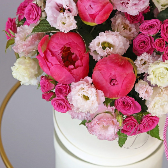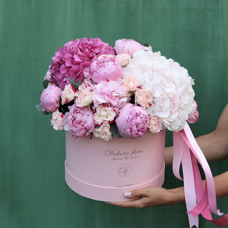 Цветы в коробках это композиции, составленные с использованием специальной губки Oasis (пиафлор) которая пропитана водой. Для того чтобы цветы дольше оставались свежими, добавляйте в нее немного воды каждый день.