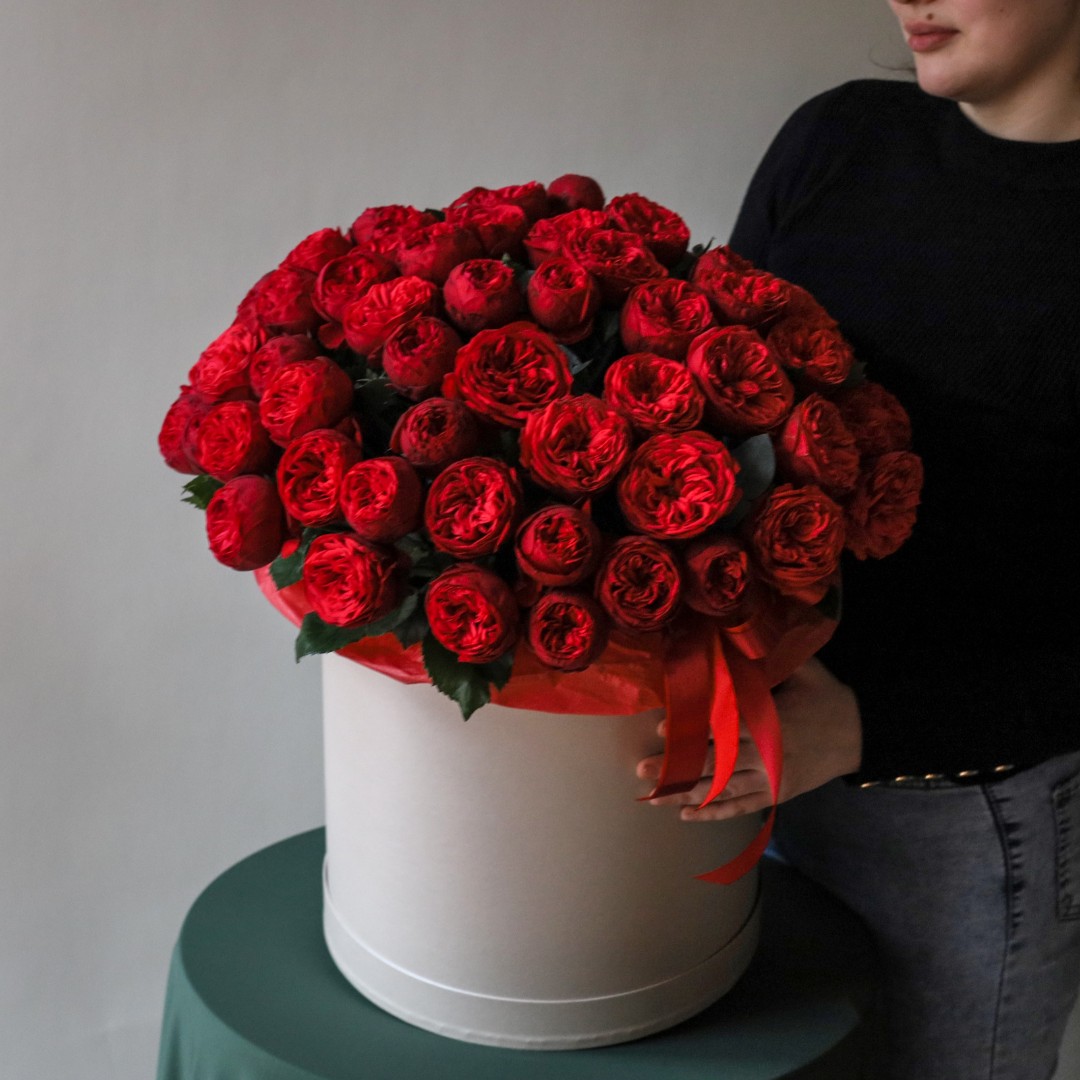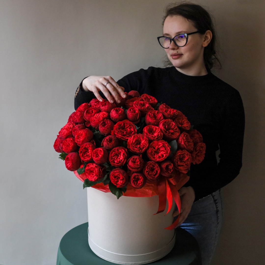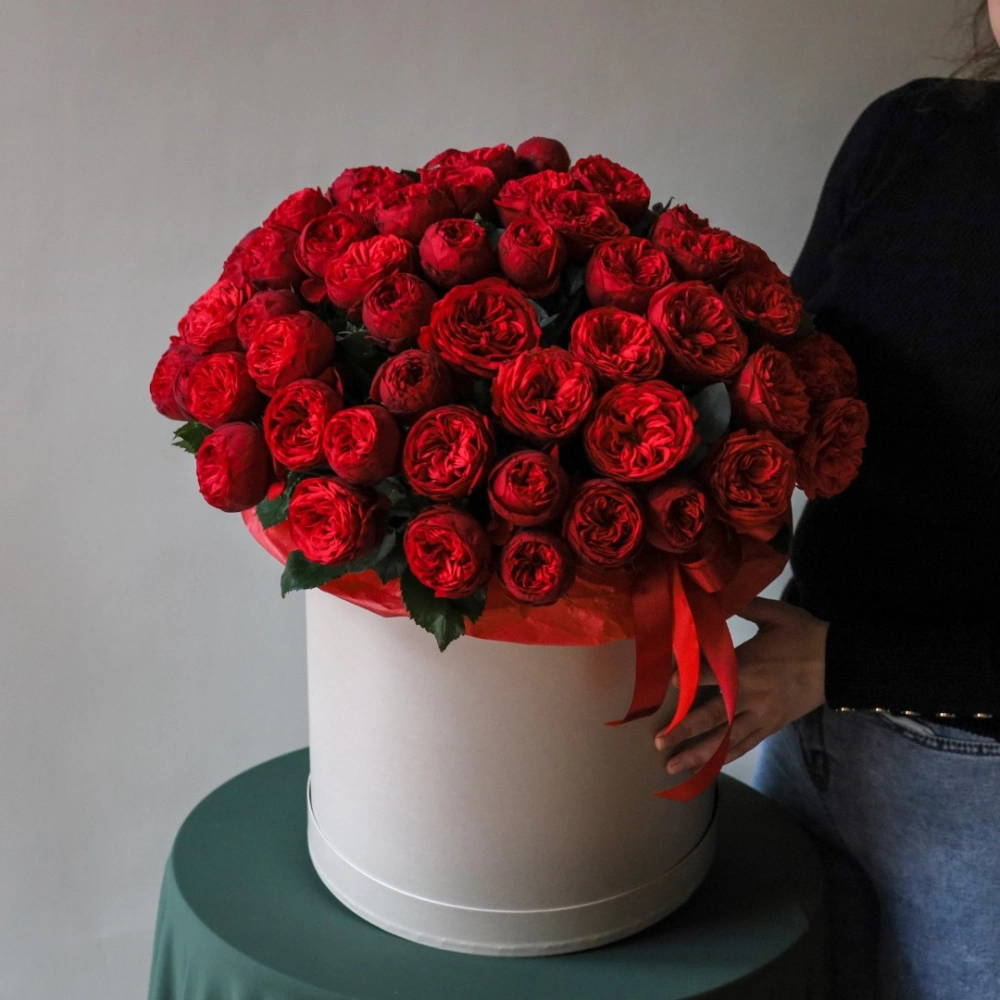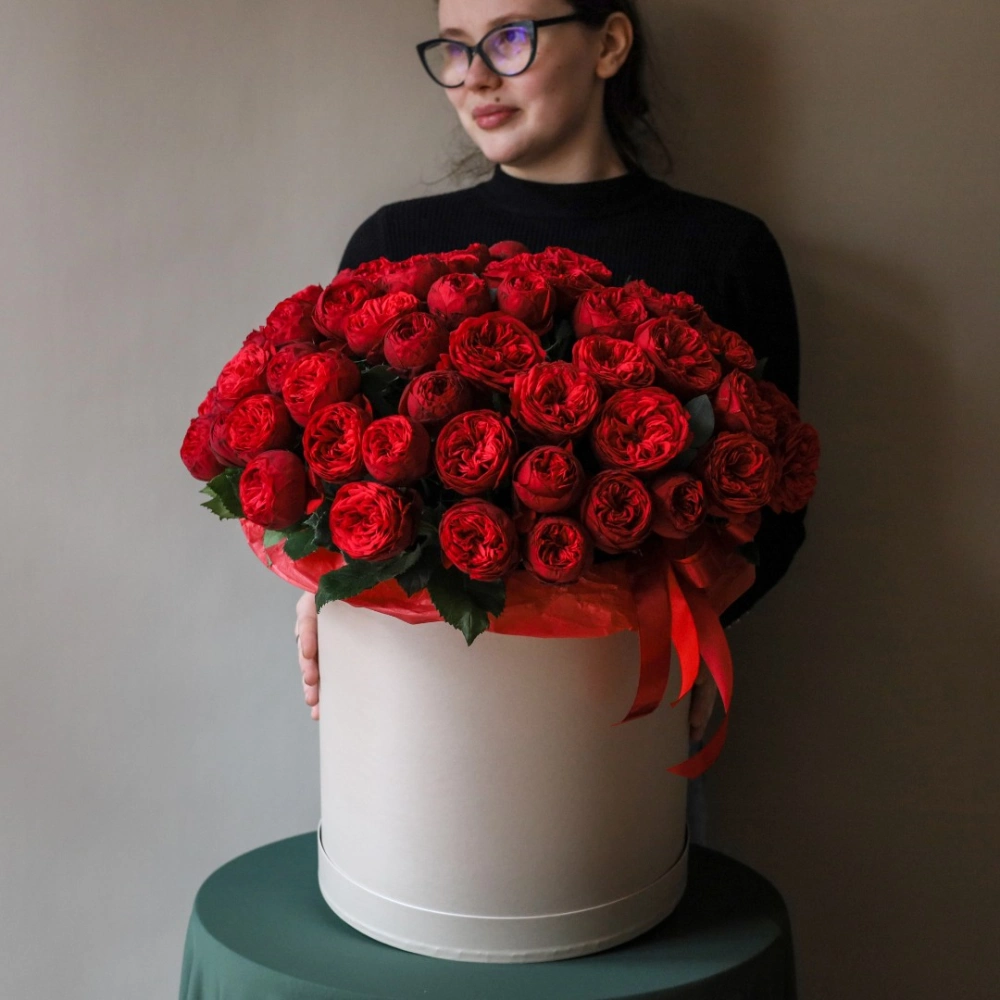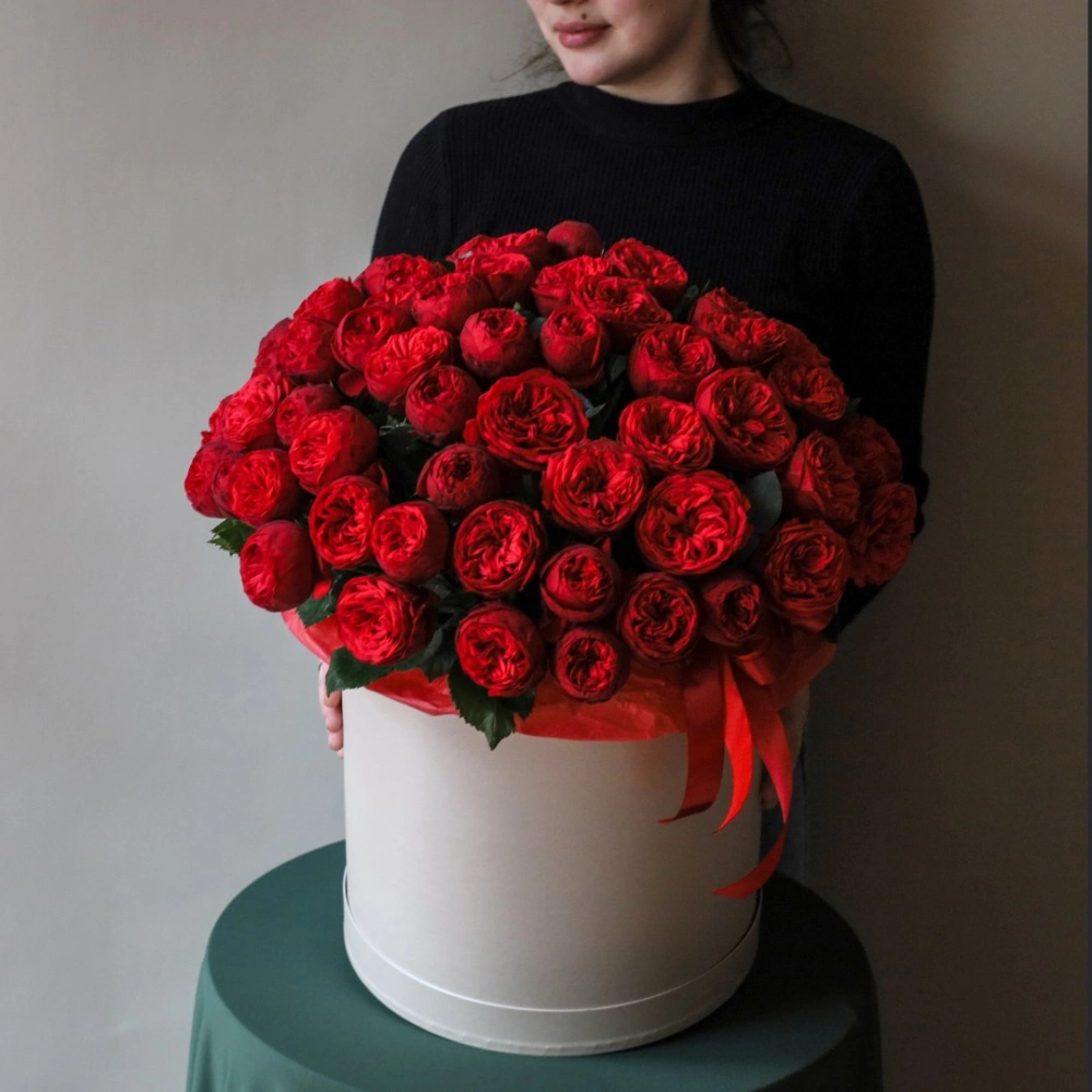 Коробка с пионовидными розами Ред пиано