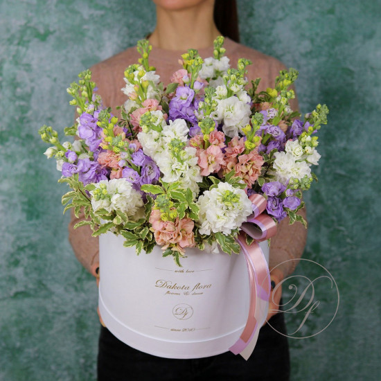 Цветы в коробках это композиции, составленные с использованием специальной губки Oasis (пиафлор) которая пропитана водой. Для того чтобы цветы дольше оставались свежими, добавляйте в нее немного воды каждый день.