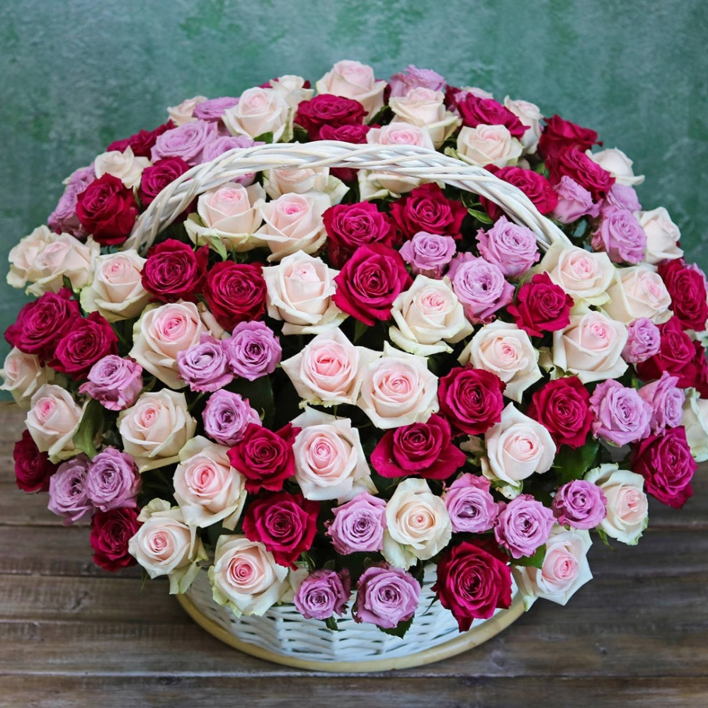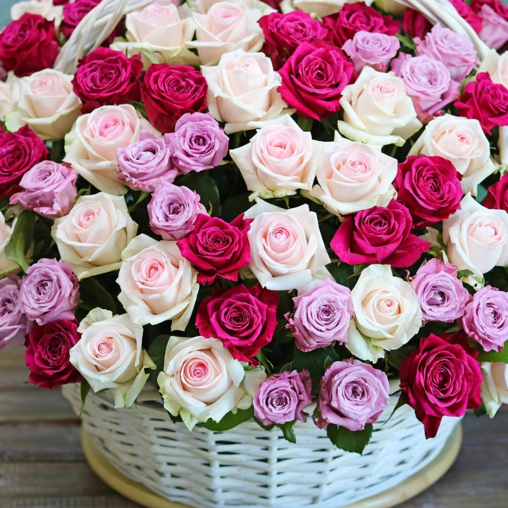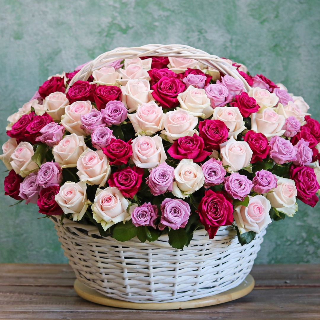 Красивые розы в корзине