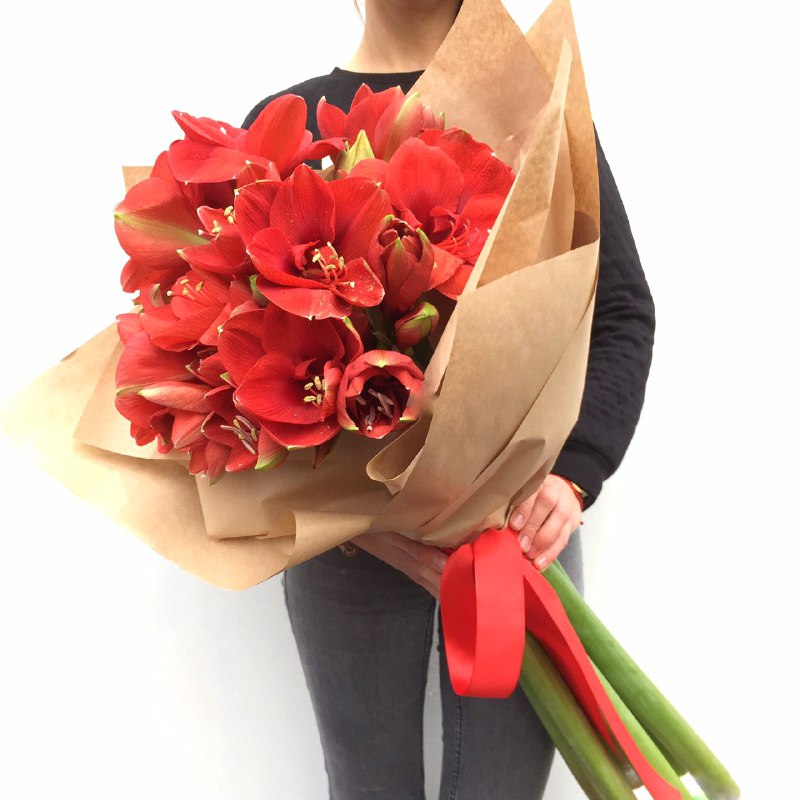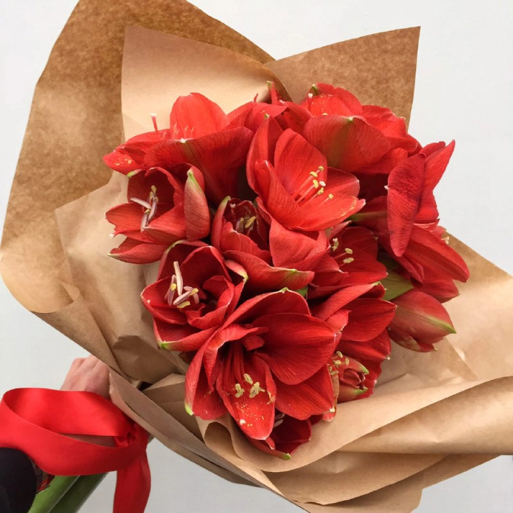Букет из красных Амарилисов. Вы можете выбрать любое количество цветов указанное в перечне к данному букету.
