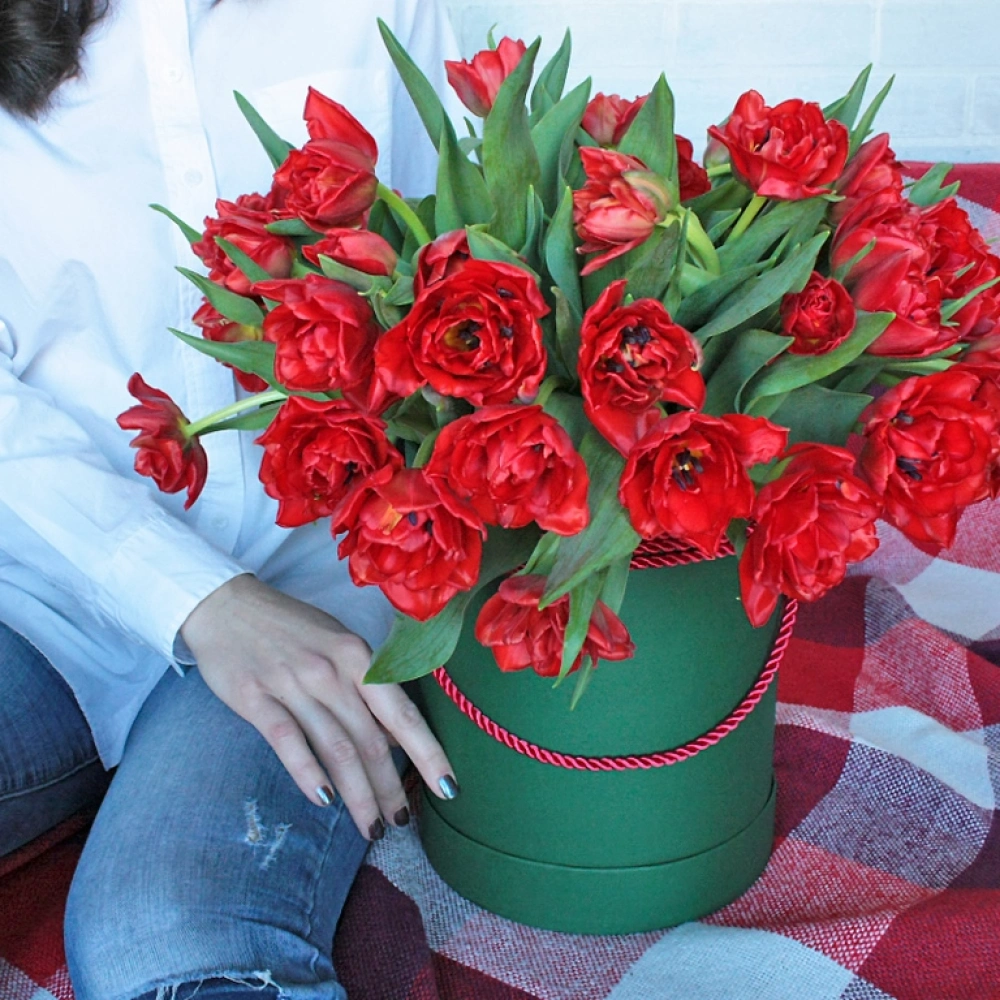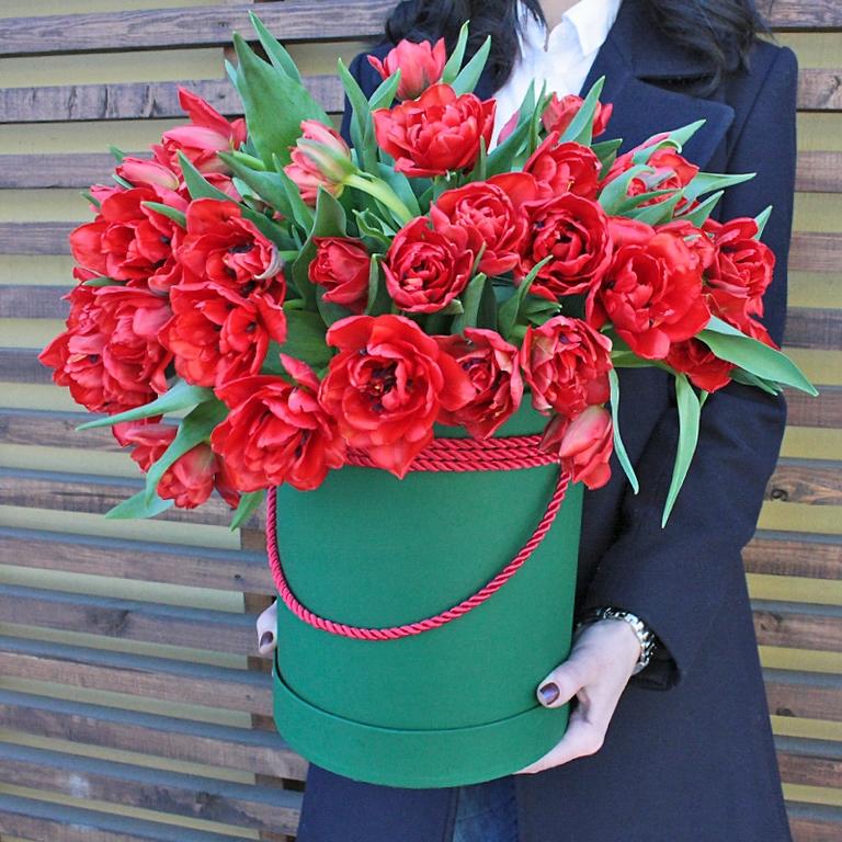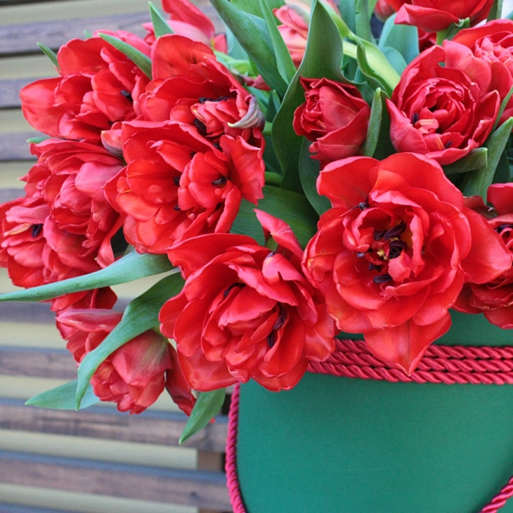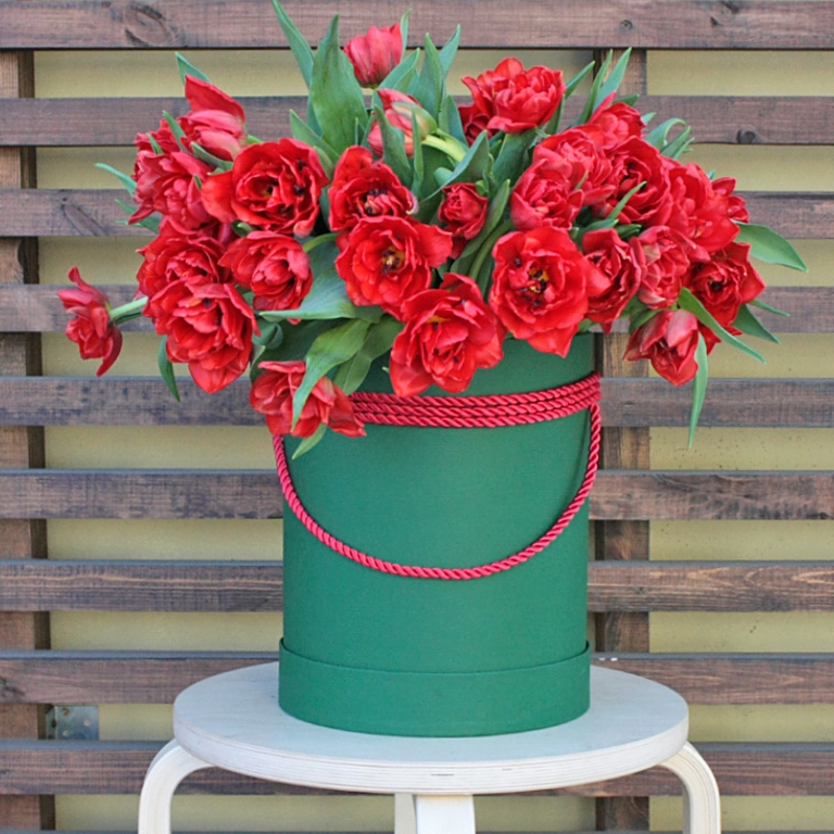 Цветы в коробках это композиции, составленные с использованием специальной губки Oasis (пиафлор) которая пропитана водой. Для того чтобы цветы дольше оставались свежими, добавляйте в нее немного воды каждый день.