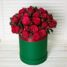 Цветы в коробках это композиции, составленные с использованием специальной губки Oasis (пиафлор) которая пропитана водой. Для того чтобы цветы дольше оставались свежими, добавляйте в нее немного воды каждый день.