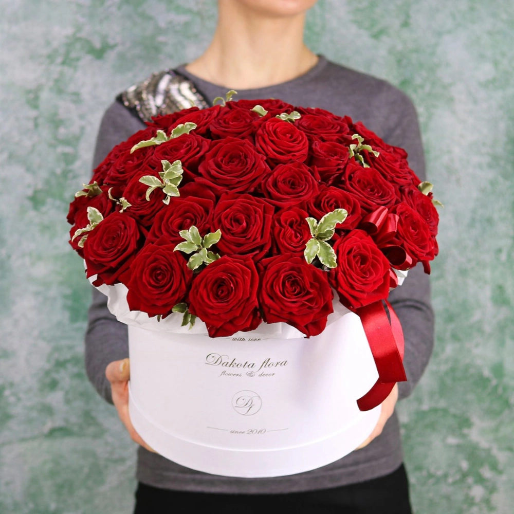 Цветы в коробках это композиции, составленные с использованием специальной губки Oasis (пиафлор) которая пропитана водой. Для того чтобы цветы дольше оставались свежими, добавляйте в нее немного воды каждый день.