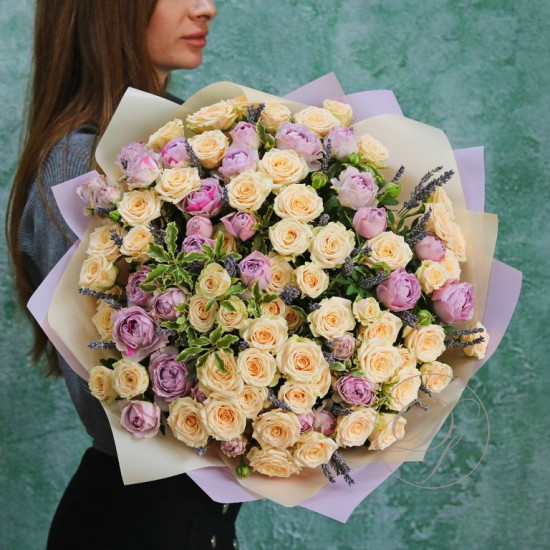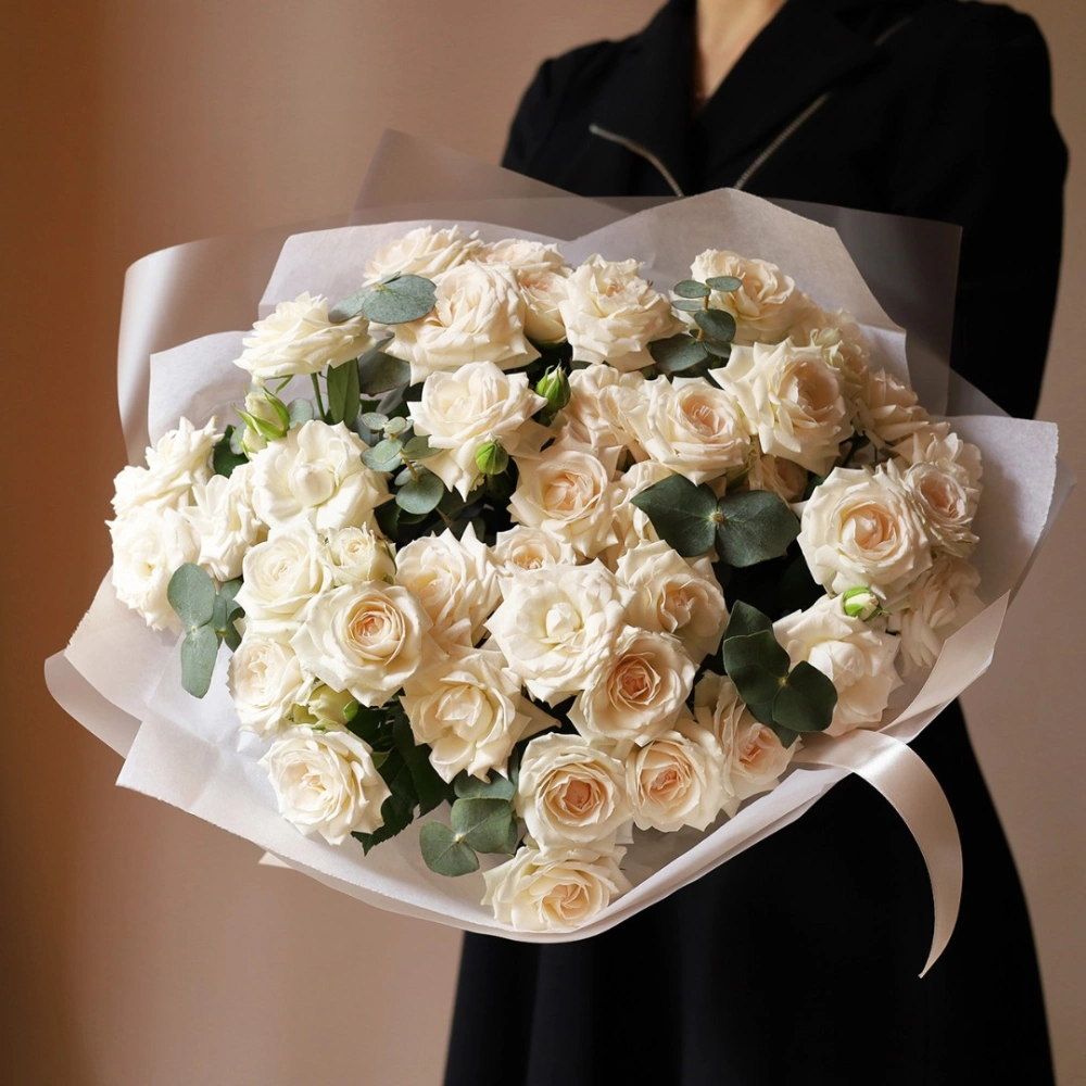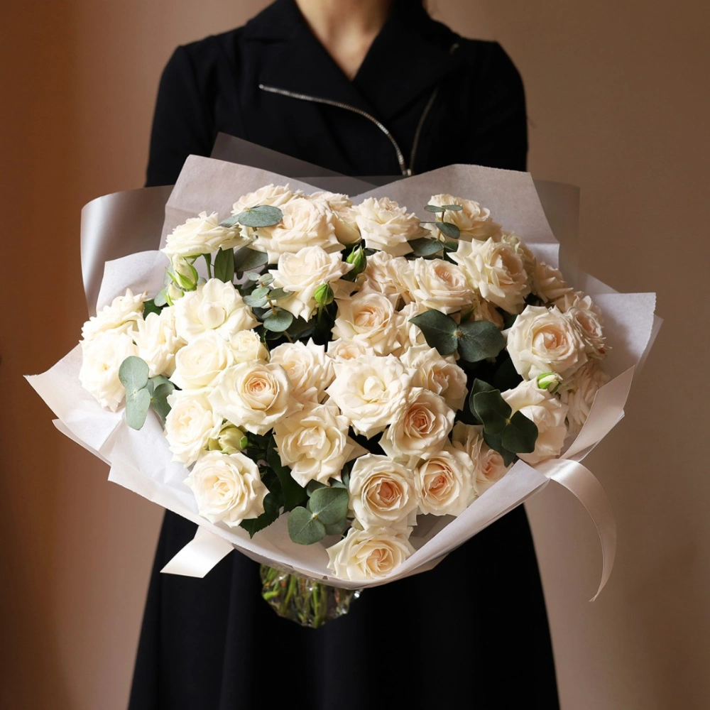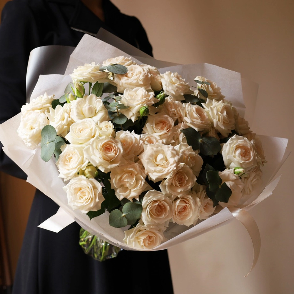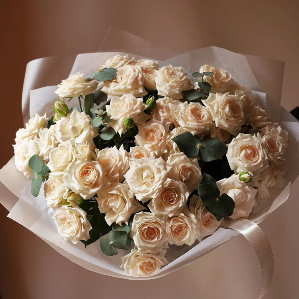 Букет из кремовых кустовых роз. Вы можете выбрать любое количество цветов указанное в перечне к данному букету.