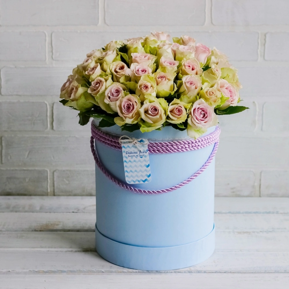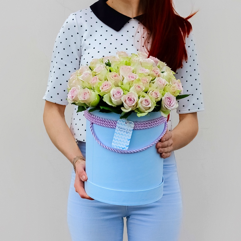 Цветы в коробках это композиции, составленные с использованием специальной губки Oasis (пиафлор) которая пропитана водой. Для того чтобы цветы дольше оставались свежими, добавляйте в нее немного воды каждый день.