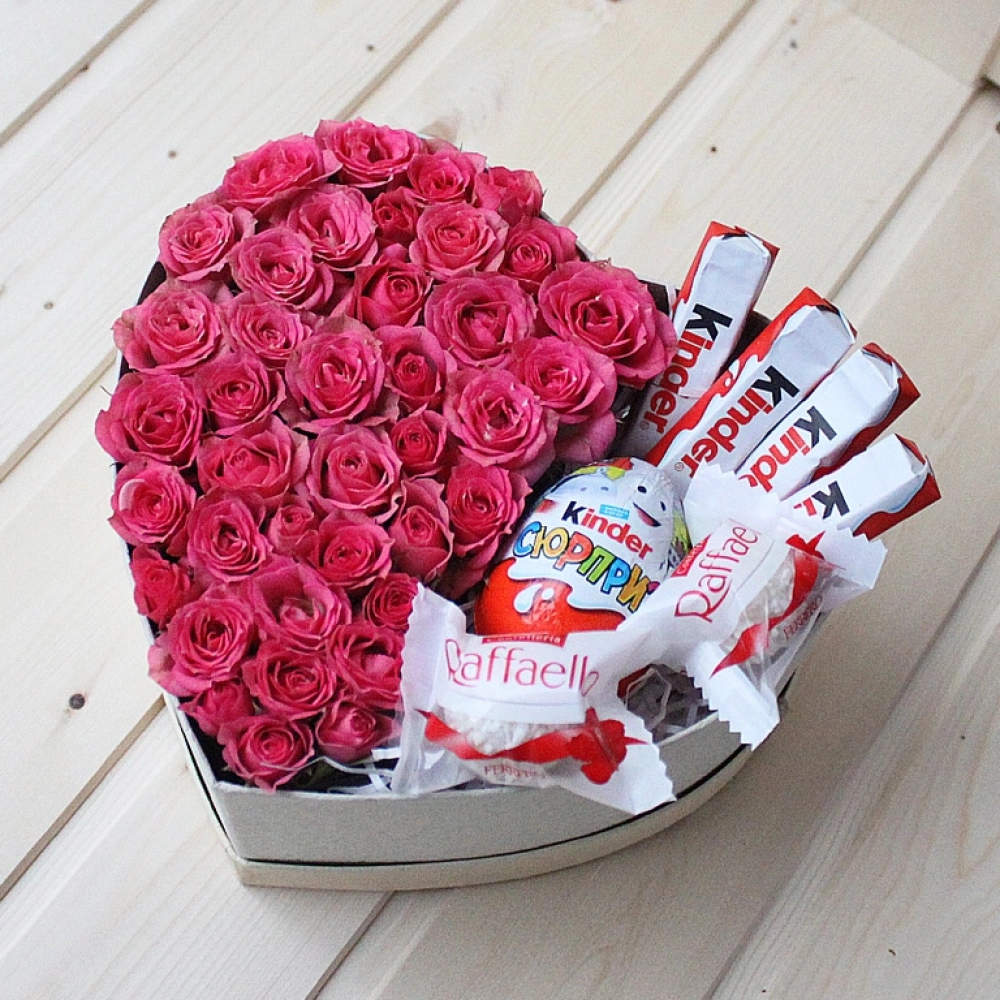 Авторские цветочные композиции в элегантных коробках различных форм, цветов, размеров, с добавлением сладостей в виде: баночки меда peroni, французских пирожных macarons, имбирных пряников и свежих ягод.