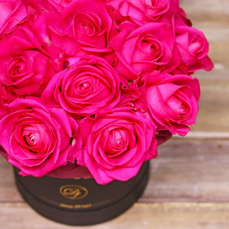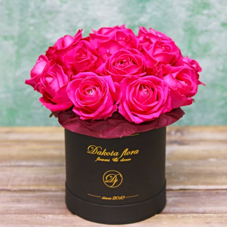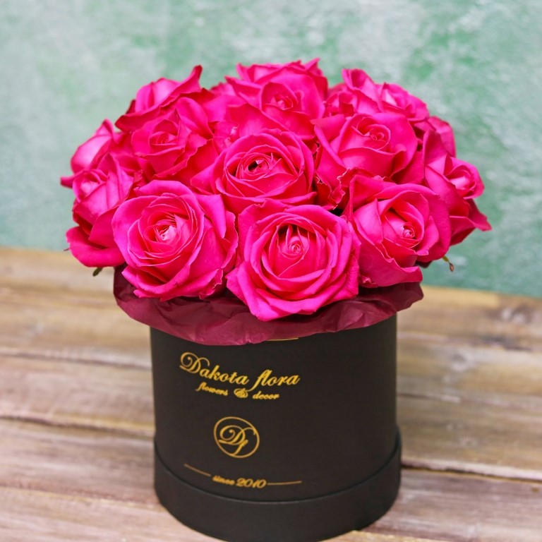 Малиновые розы в черной коробке