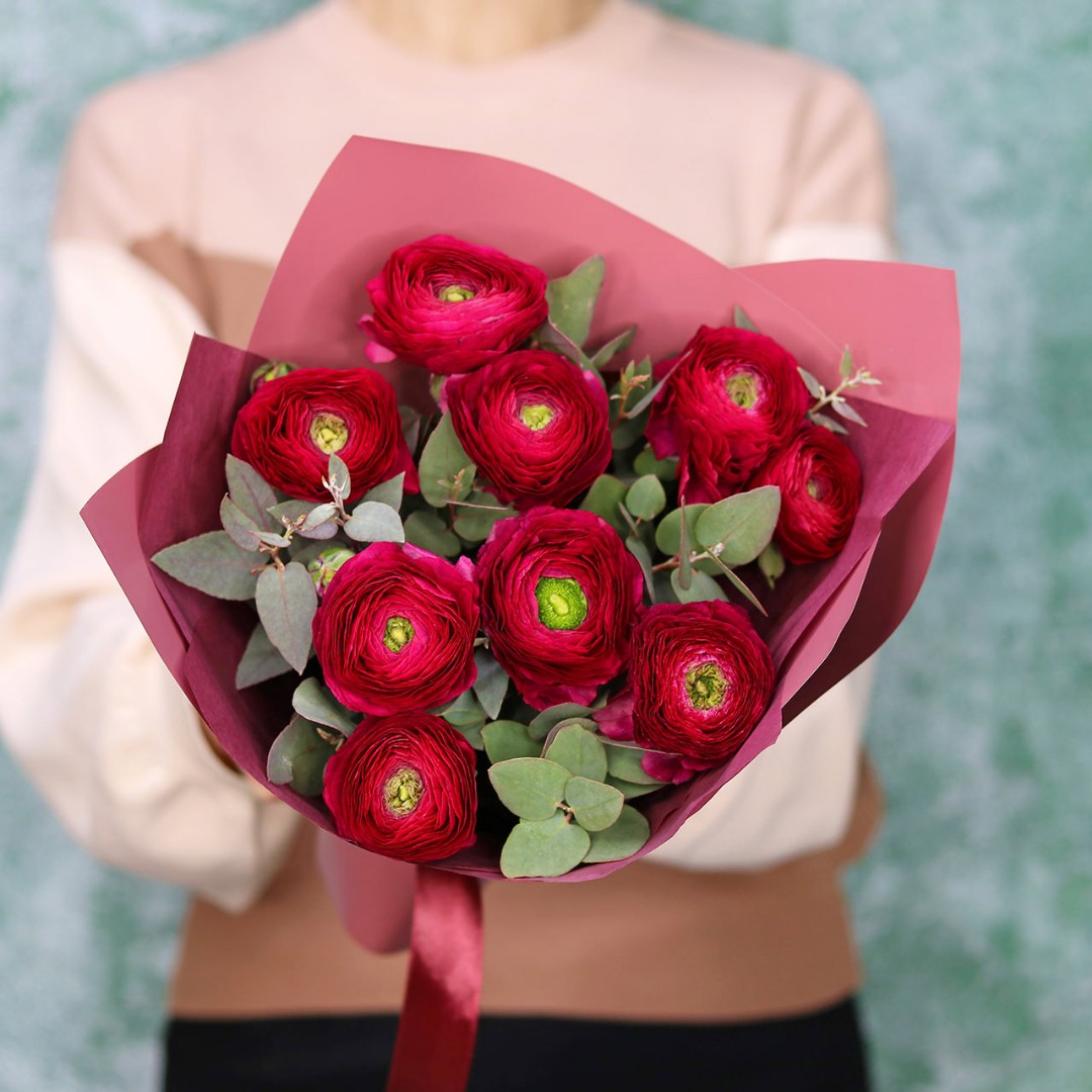 Букет из малиновых ранункулюсов. Вы можете выбрать любое количество цветов указанное в перечне к данному букету.