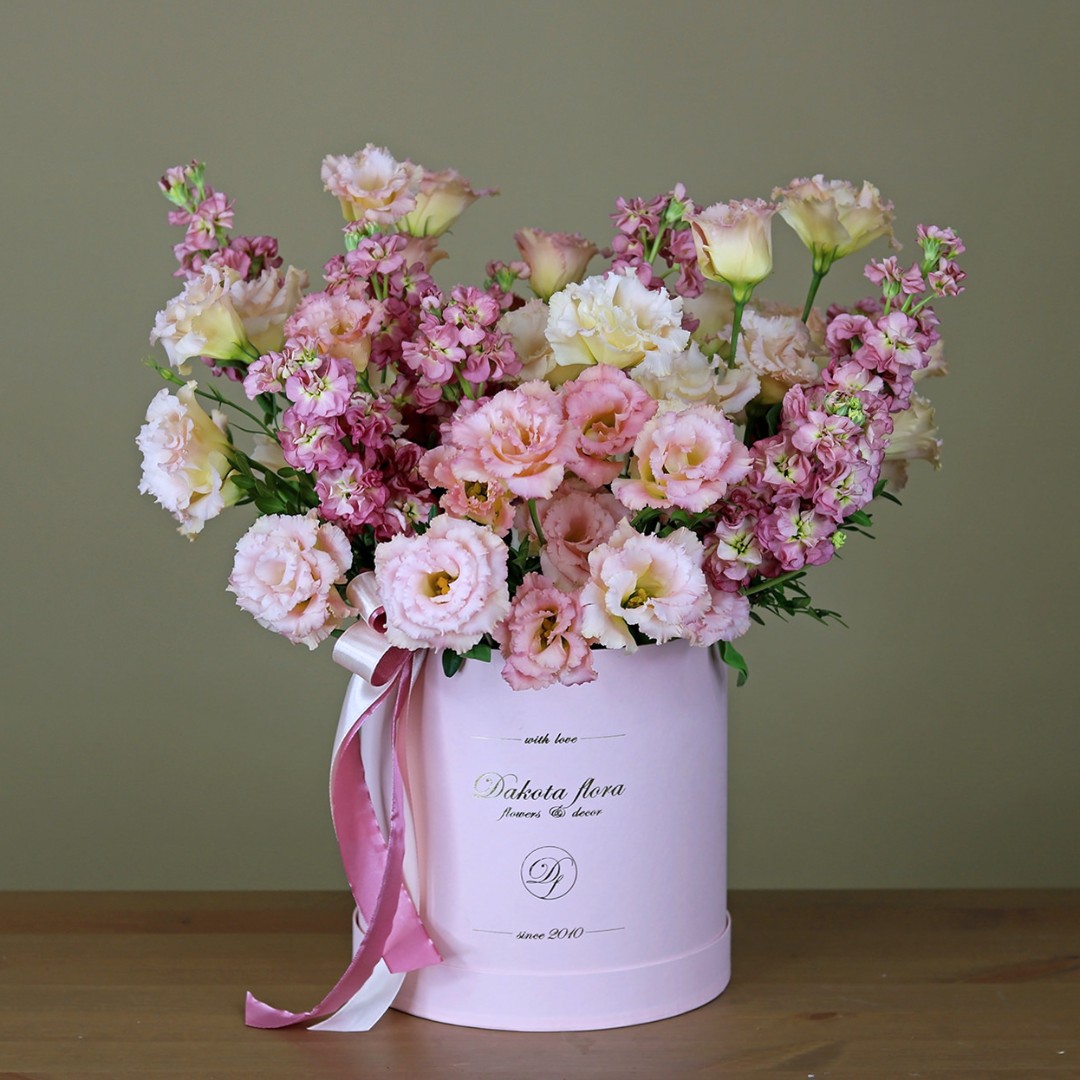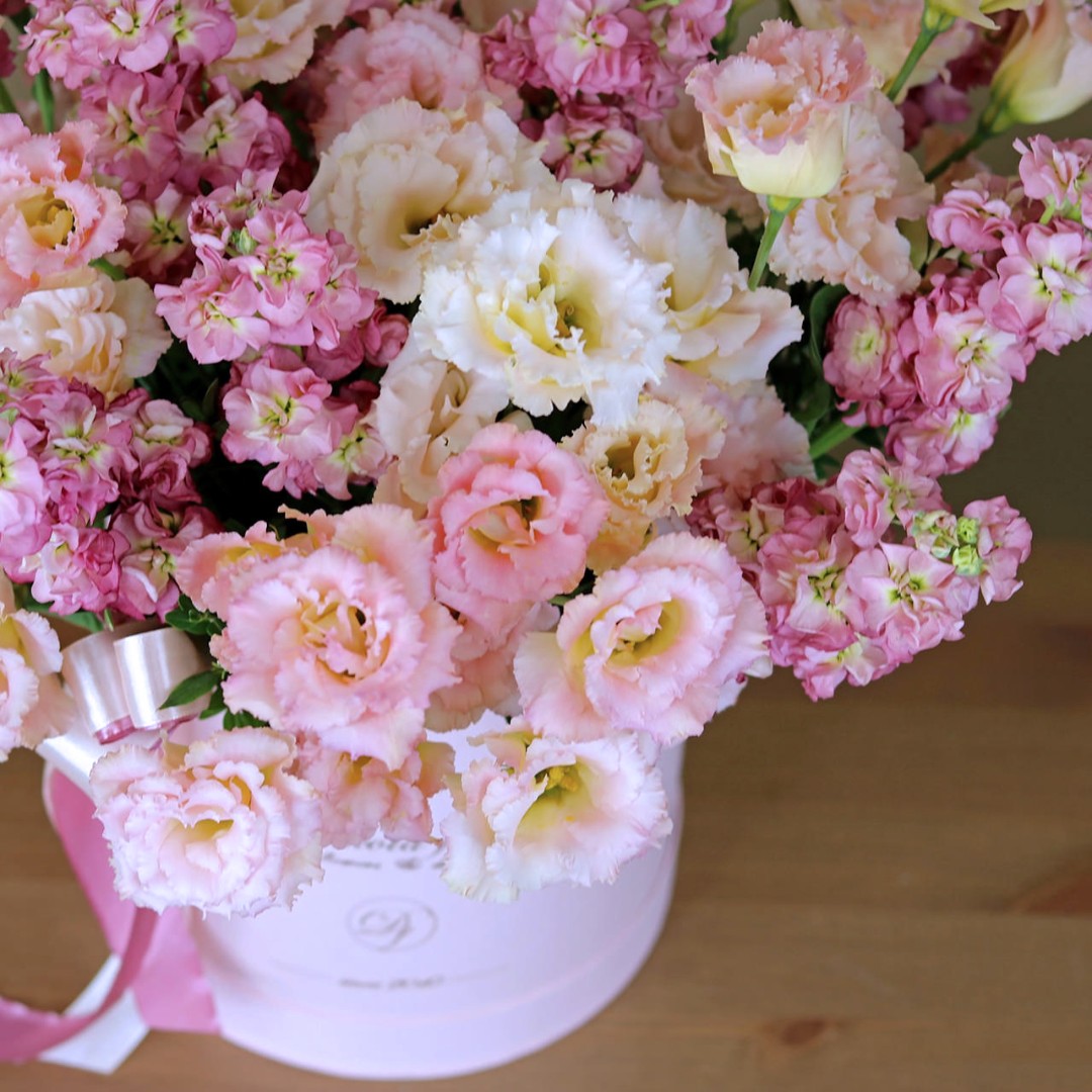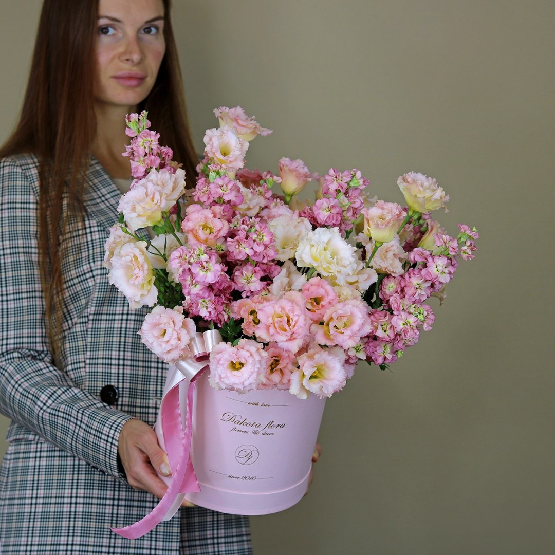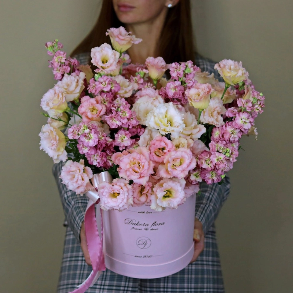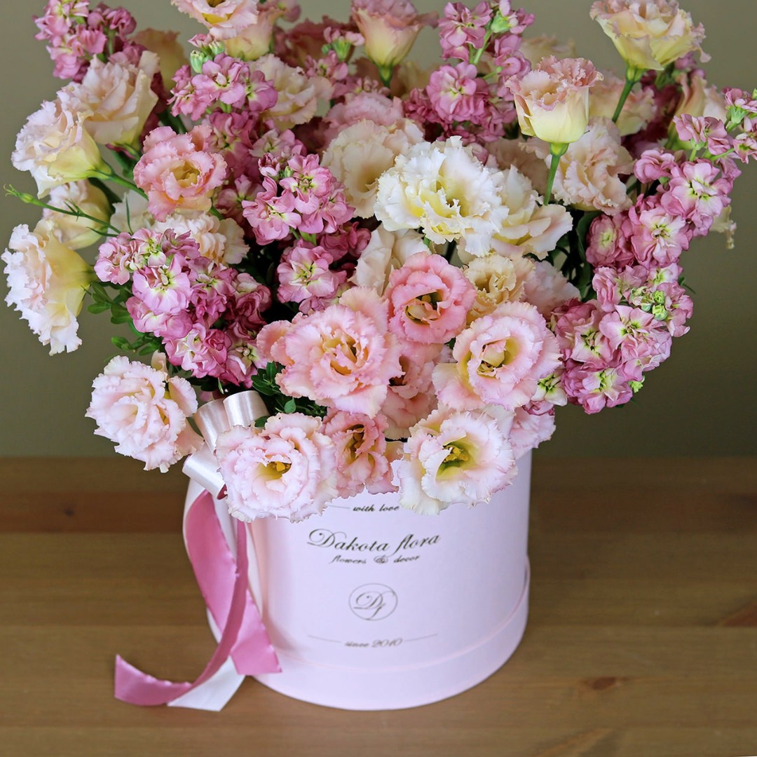 Маттиола и эустома в коробке
