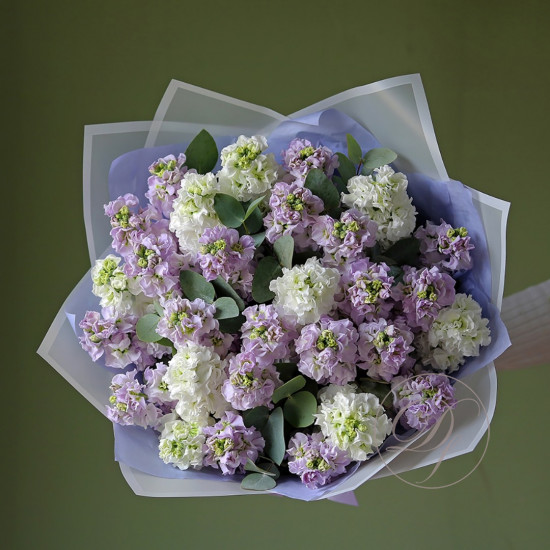 Букет из Маттиолы. Душистые цветы маттиолы бывают разного цвета, на одном стебле собрано множество соцветий, цветок невероятно ароматный. Вы можете выбрать любое количество цветов указанное в перечне к данному букету.