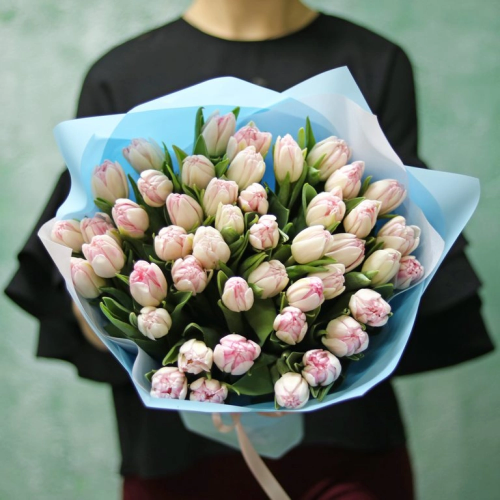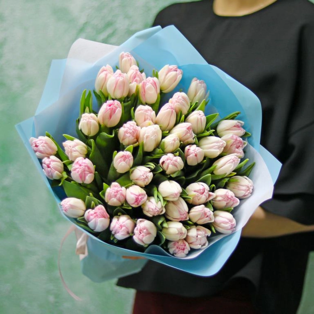 Букет из розовых махровых тюльпанов сорт Факстрот. Вы можете выбрать любое количество цветов указанное в перечне к данному букету.