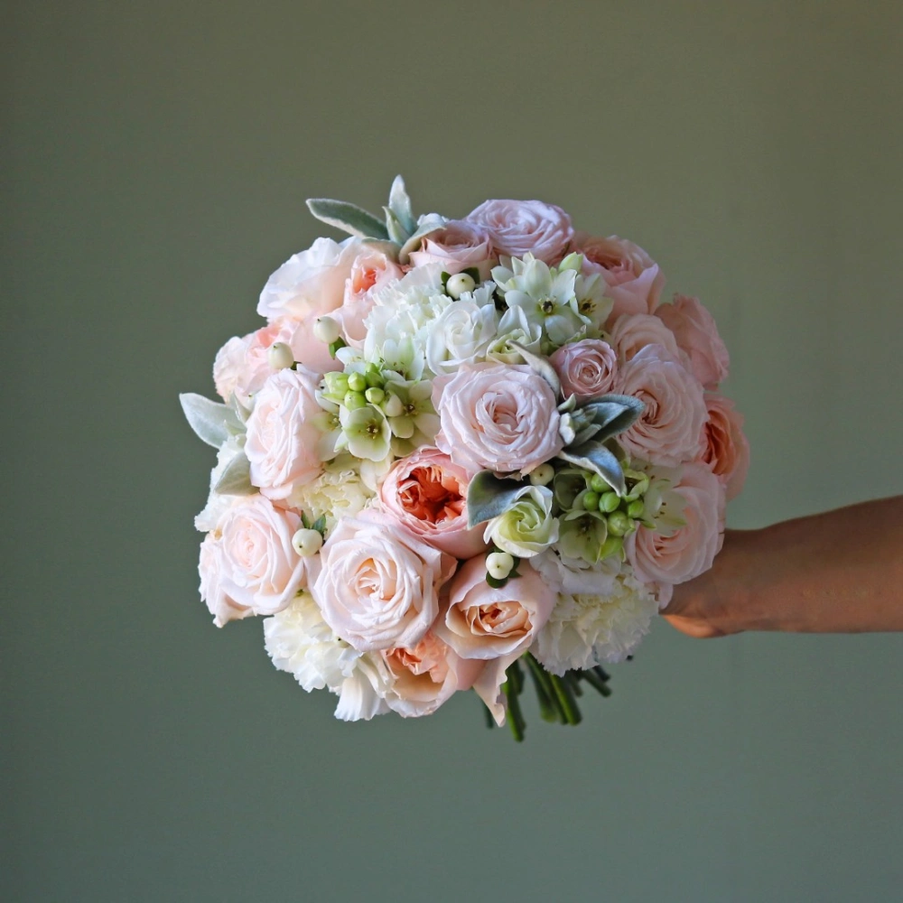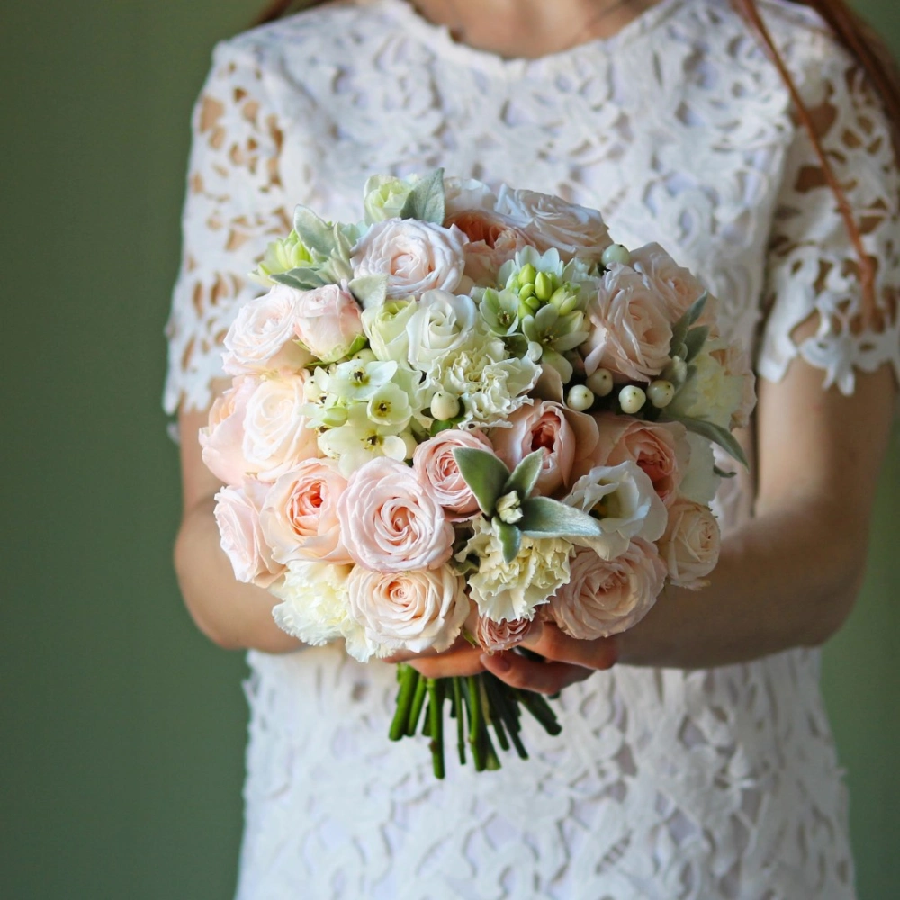 Для своих букетов мы используем самые свежие цветы, дарим бутоньерку для жениха в стилистике букета невесты. К этому букету вы также сможете приобрести: цветочный браслет, венок или цветы для прически, букеты для подружек невесты, лепестки роз.