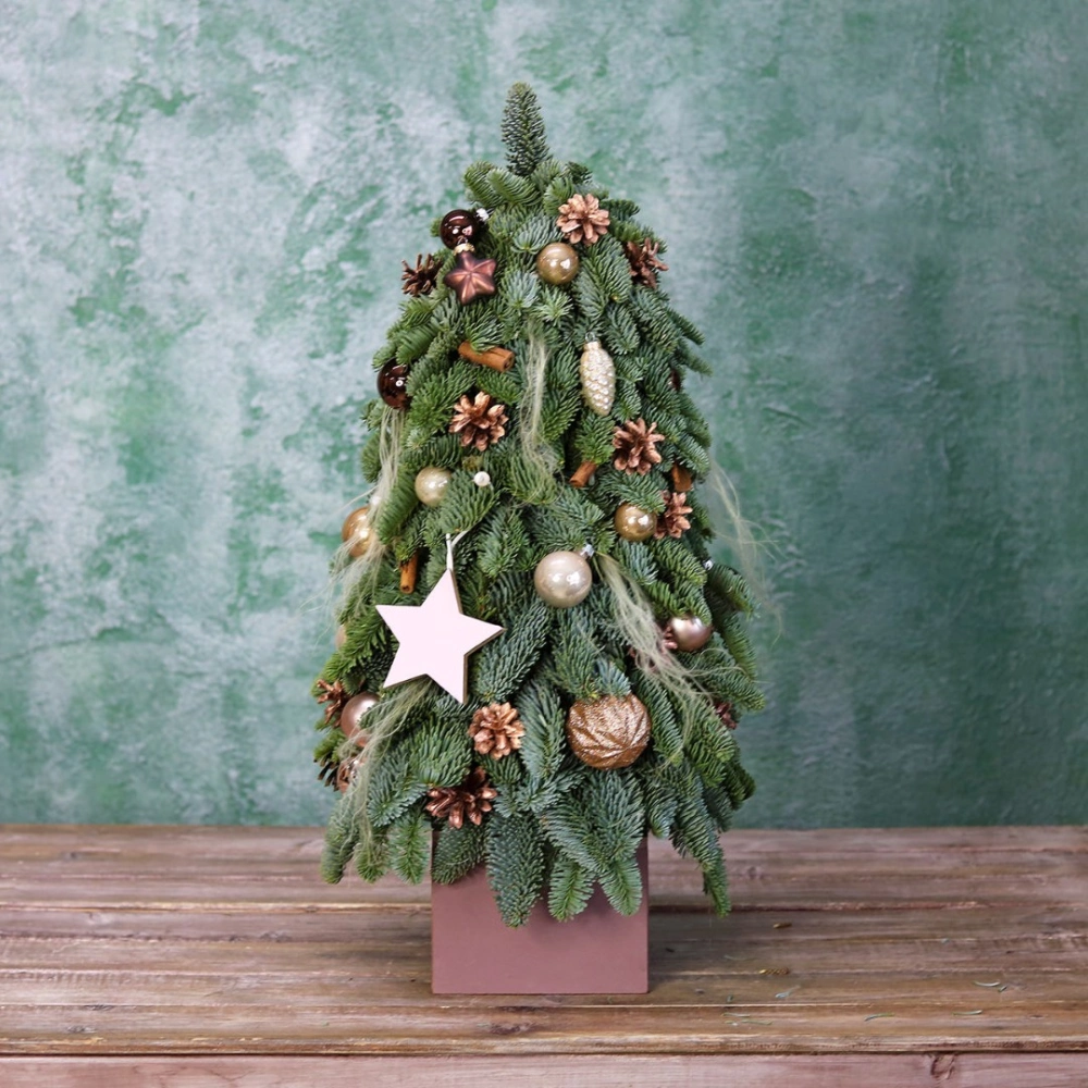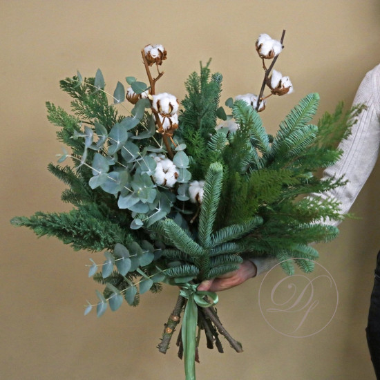 Композиция из натуральной ели хорошо подойдет для украшения дома или офиса. Все композиции авторские и уникальные, каждая работа выполняется на заказ. Вы можете выбрать нужный Вам размер и рассказать нам о своих пожеланиях по дизайну.