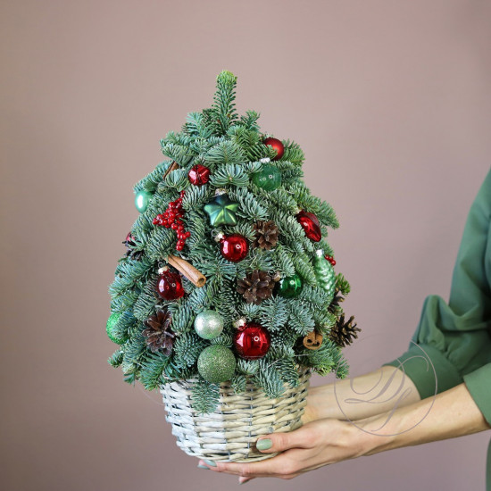 Оформить заказ на композицию из ели, лучше заранее, минимум за сутки, для изготовления и подбора декора требуется время.