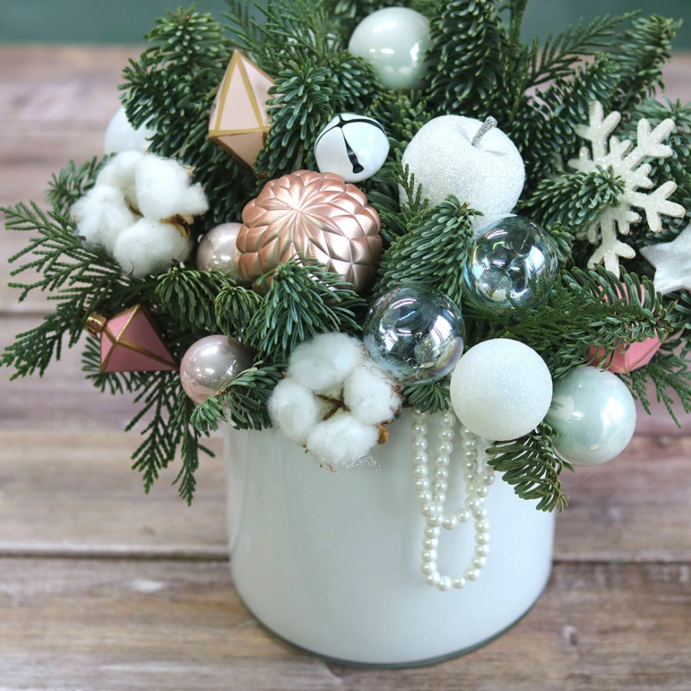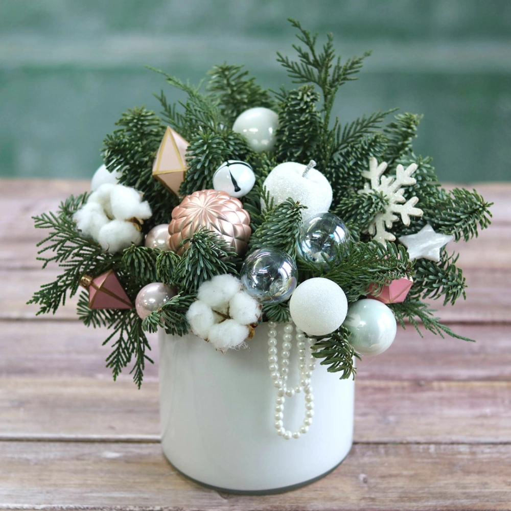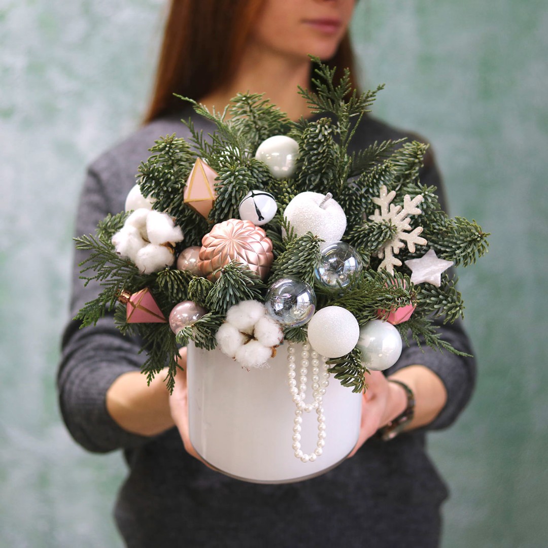 Новогодняя композиция из натуральной хвои с авторским декором на заказ.