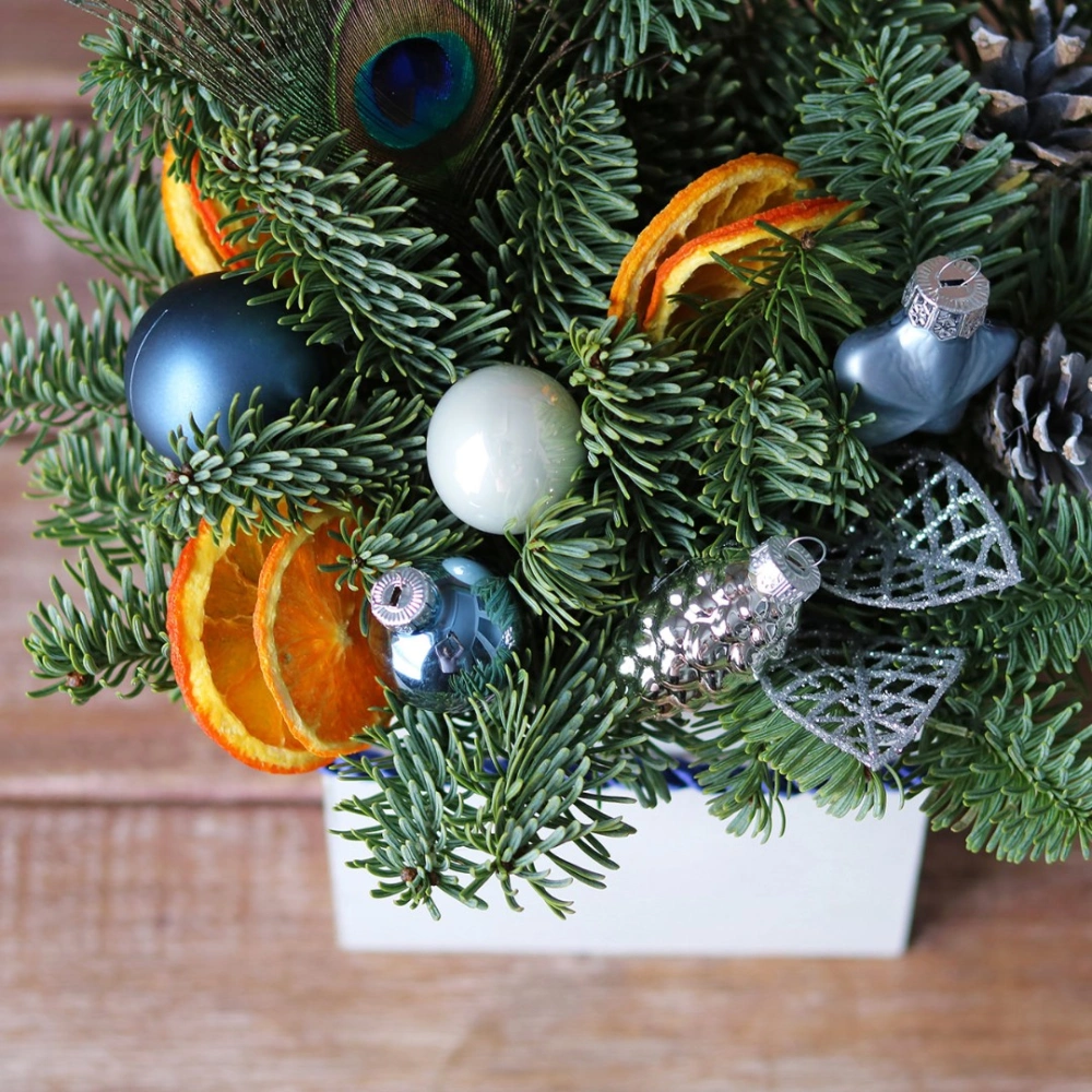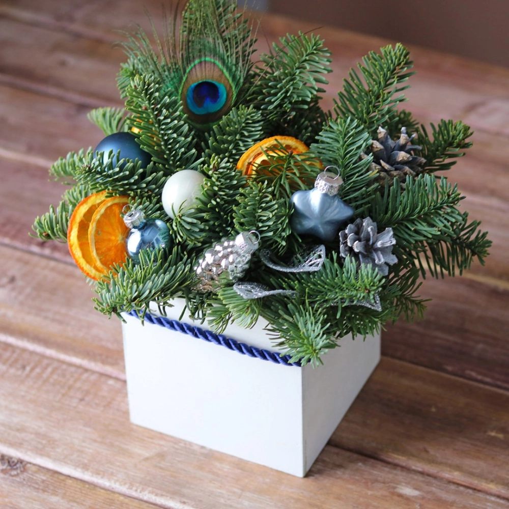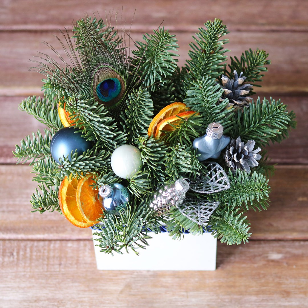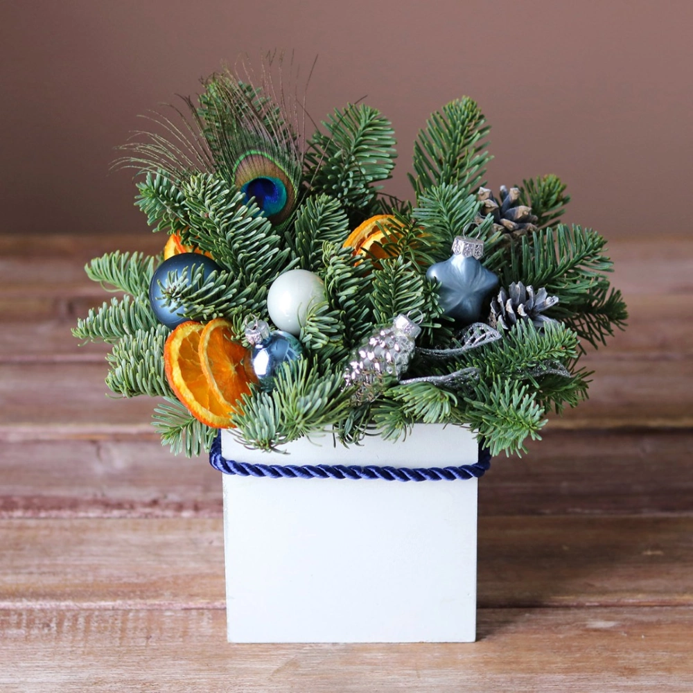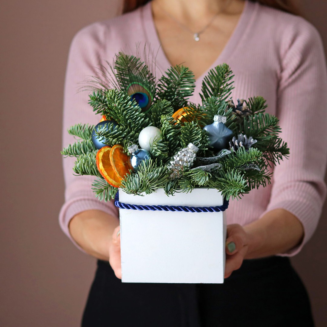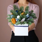 Новогодняя композиция из натуральной хвои с авторским декором на заказ.