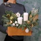 Композиция из натуральной ели хорошо подойдет для украшения дома или офиса. Все композиции авторские и уникальные, каждая работа выполняется на заказ. Вы можете выбрать нужный Вам размер и рассказать нам о своих пожеланиях по дизайну.