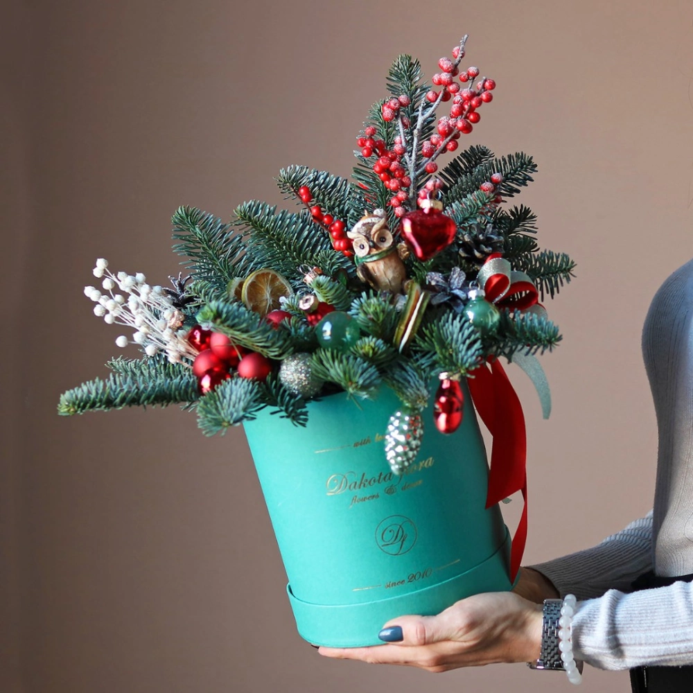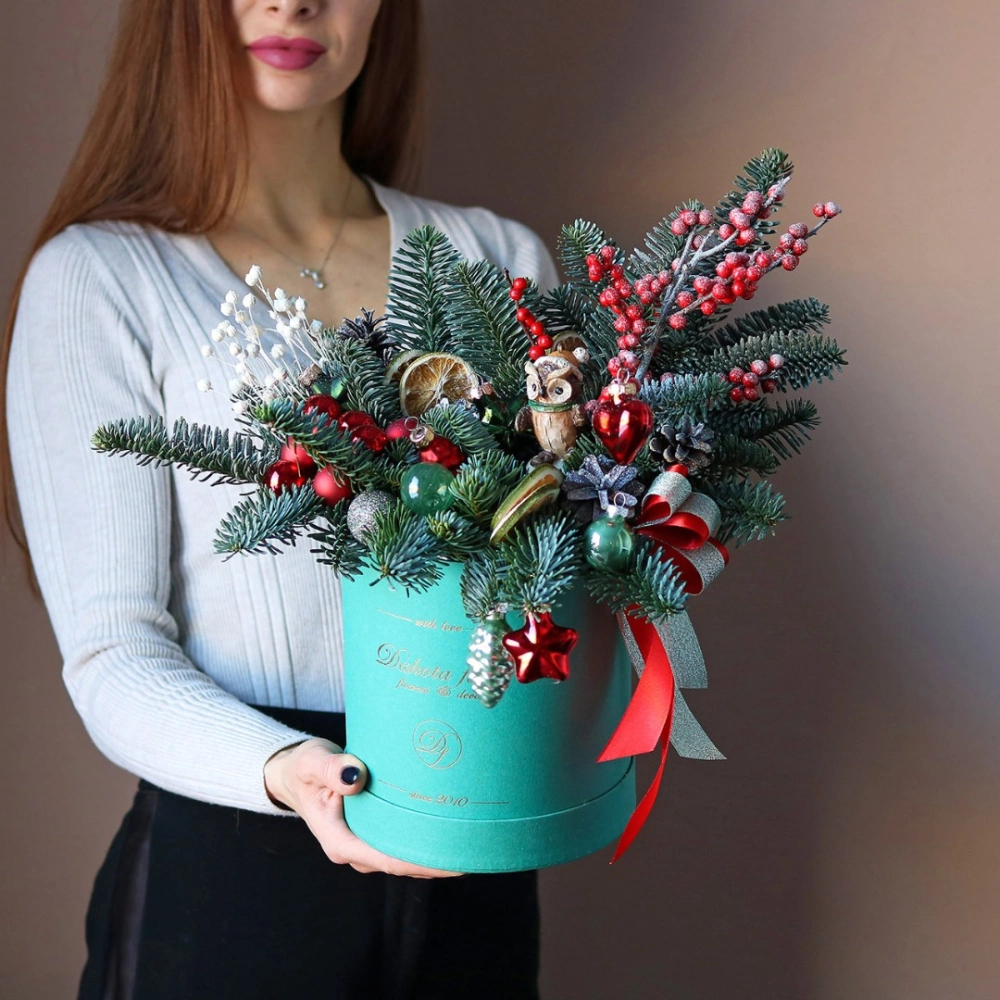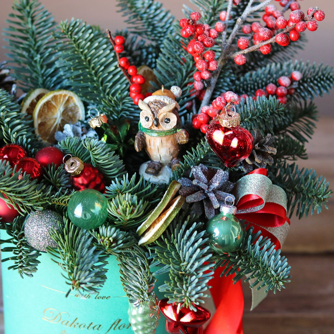 Новогодняя композиция из натуральной хвои с авторским декором на заказ.
