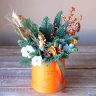 Композиция из натуральной ели хорошо подойдет для украшения дома или офиса. Размер композиции можно выбрать в карточке товара. Все композиции авторские и уникальные, каждая работа выполняется на заказ. Вы можете выбрать нужный Вам размер и рассказать нам о своих пожеланиях по дизайну.