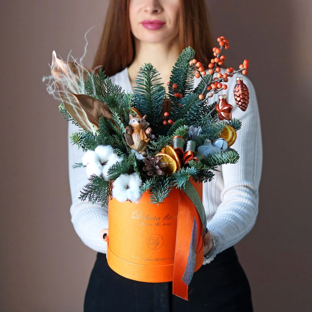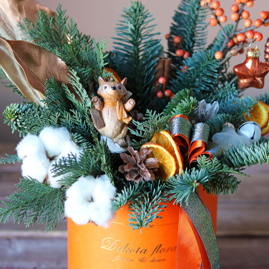 Новогодняя композиция из натуральной хвои с авторским декором на заказ.