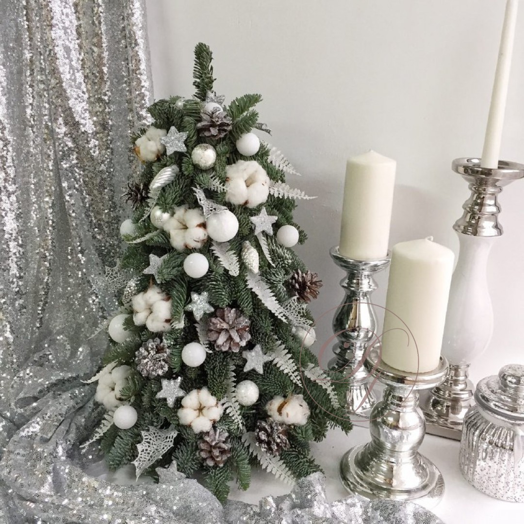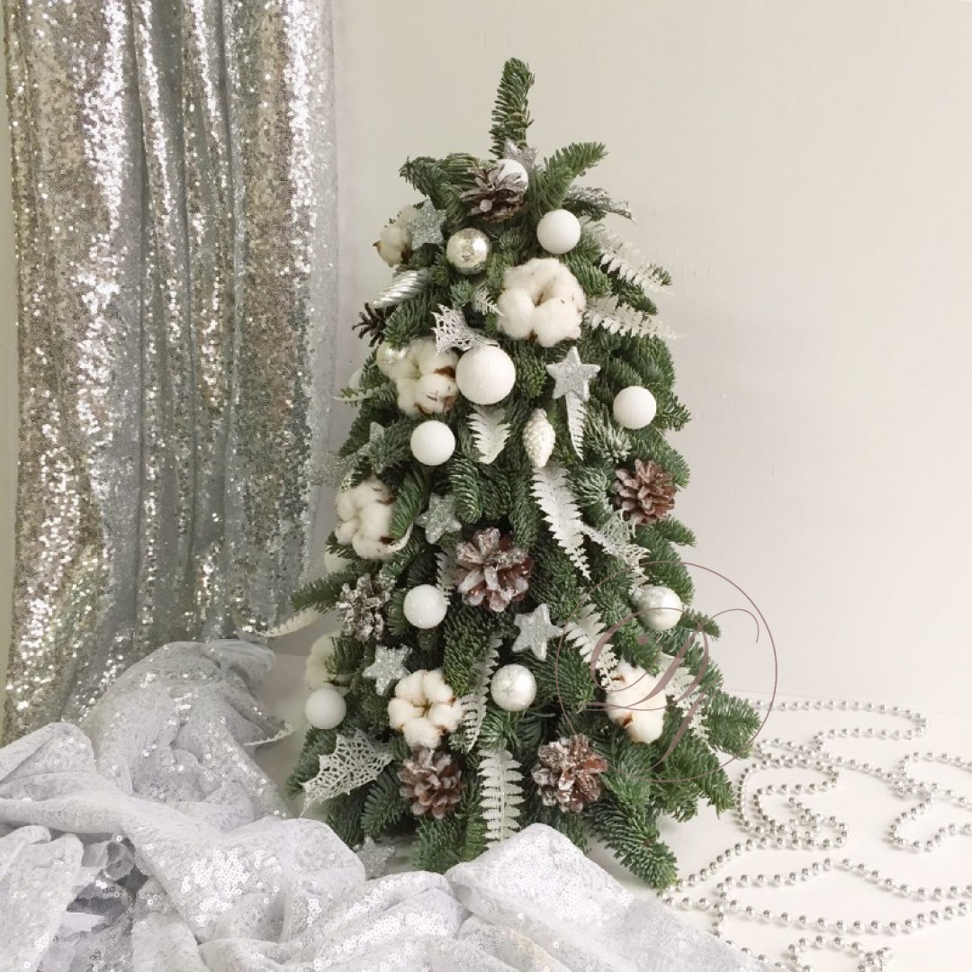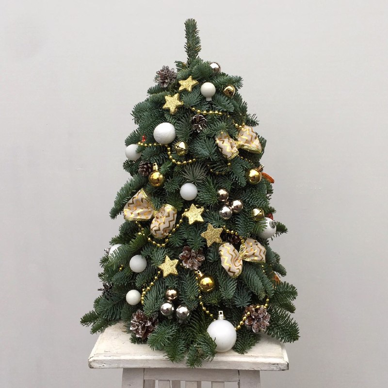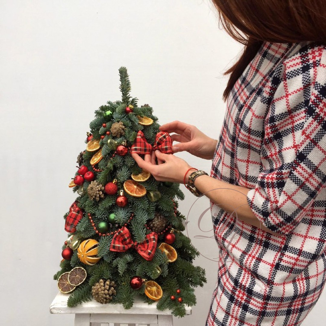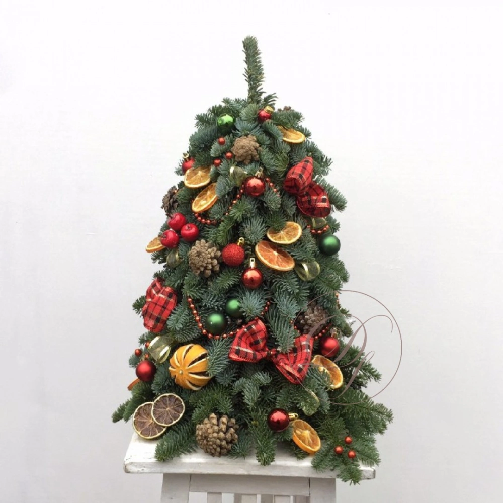 Декоративная елка на стол с уникальным дизайном. Декоративная елка собрана из веточек натуральной ели, закрепленных на специальной флористической губке, она будет очень долго сохранять свою свежесть и аромат. Такая елочка станет замечательным подарком в канун новогодних праздников для родных и друзей. Она будет чудесно смотреться и дома, и в офисе, и на корпоративном мероприятии. Елки на заказ с доставкой.