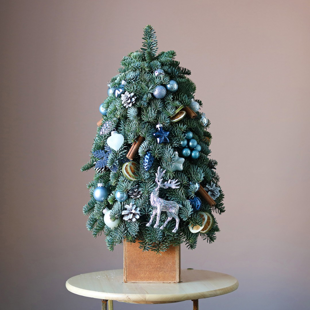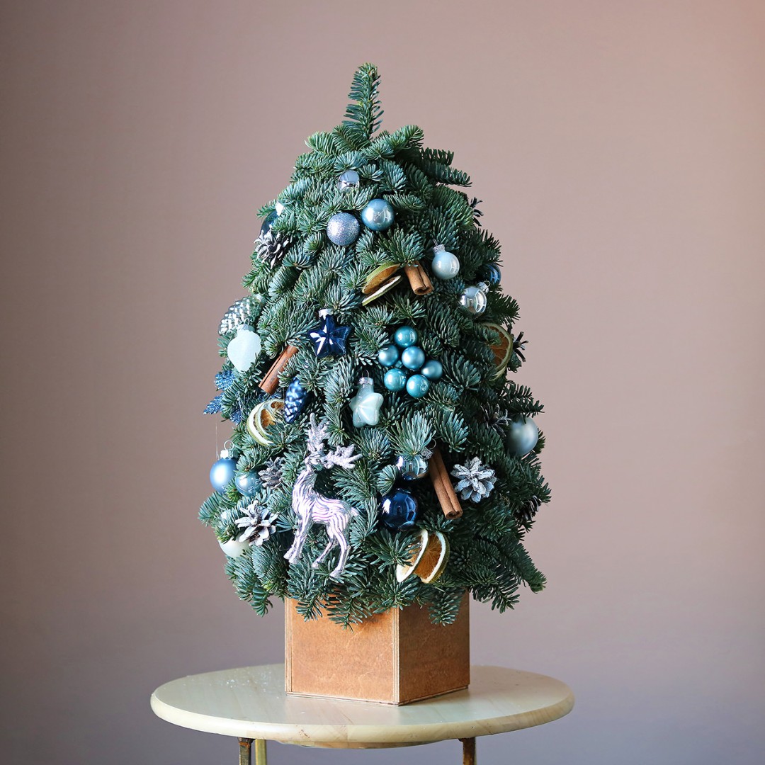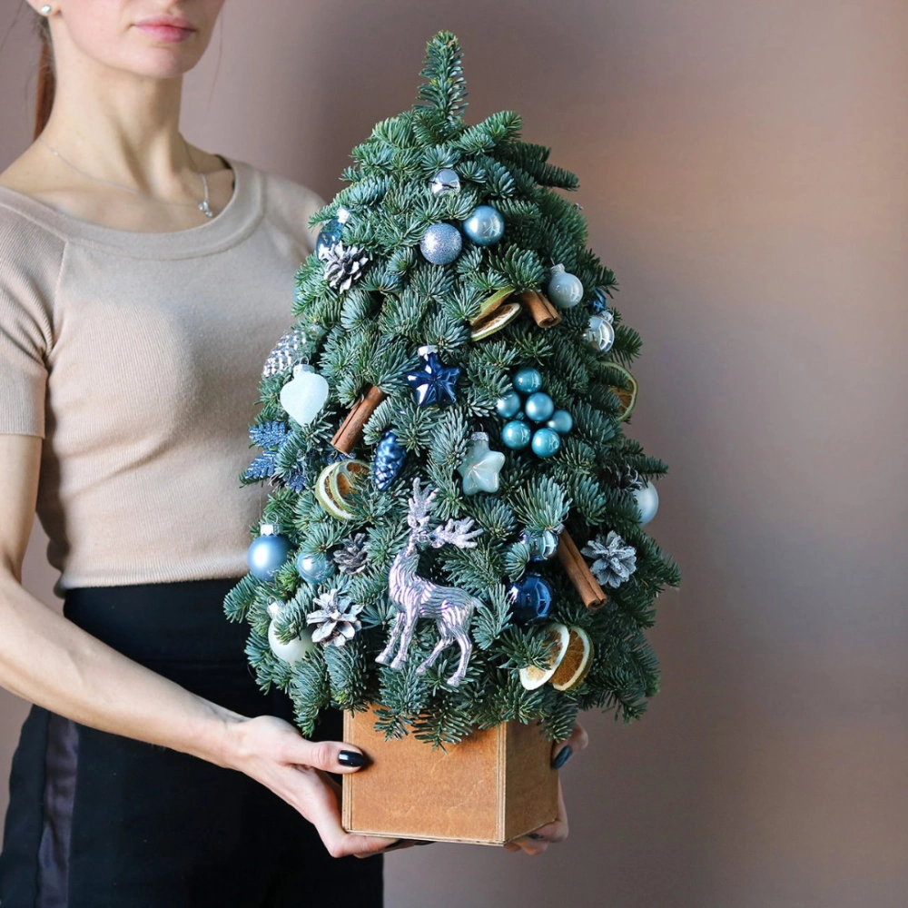 Новогодняя ёлочка из натуральной хвои с авторским декором на заказ. На фотографии елочка высотой 40-45 см.