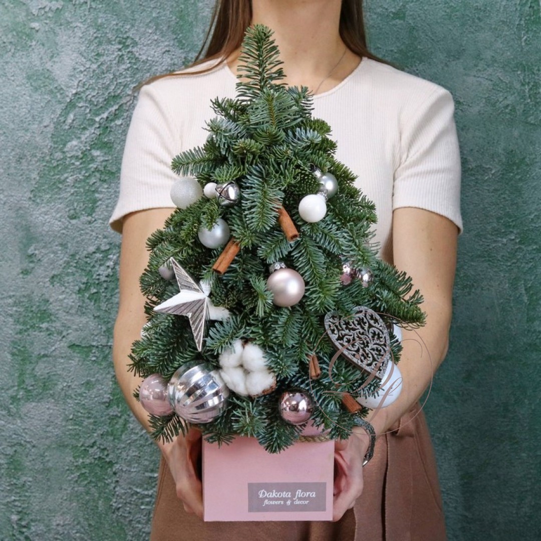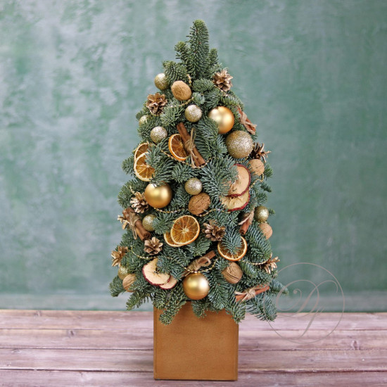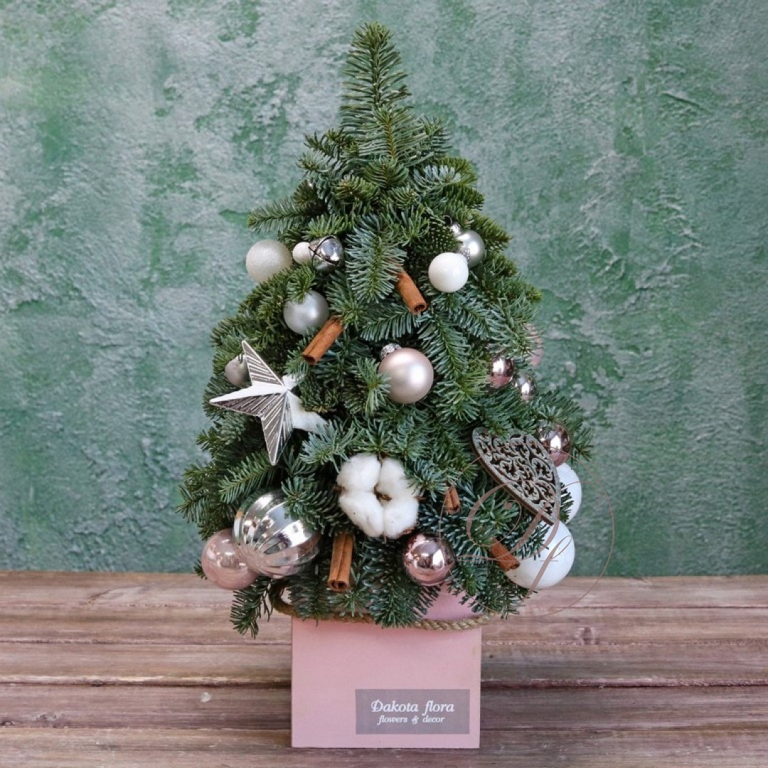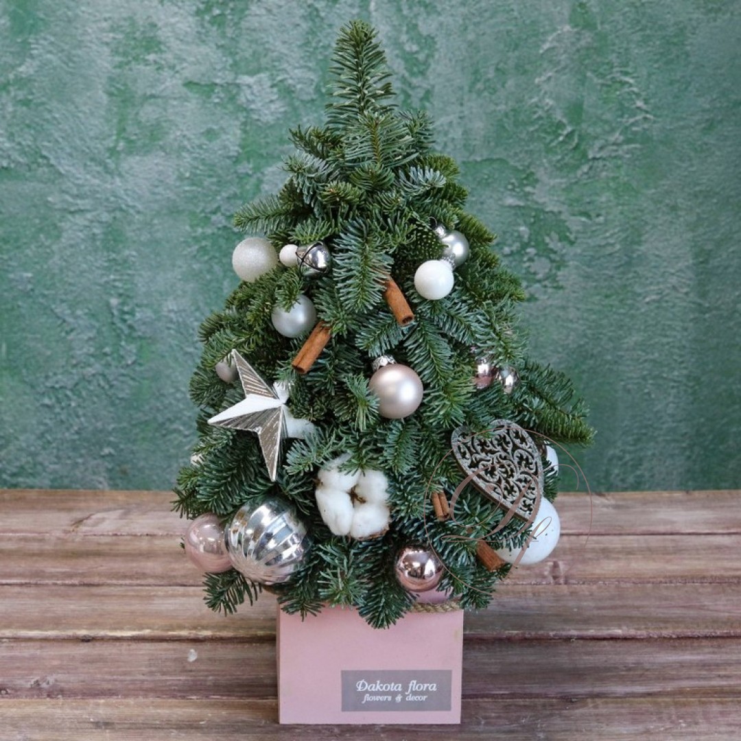 Новогодняя ёлочка из натуральной хвои с авторским декором на заказ. На фотографии елочка высотой 40-45 см.