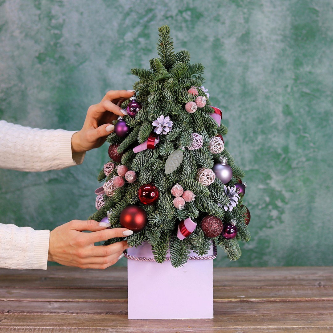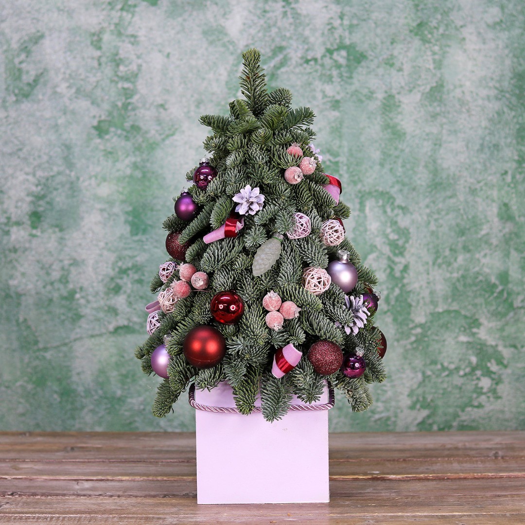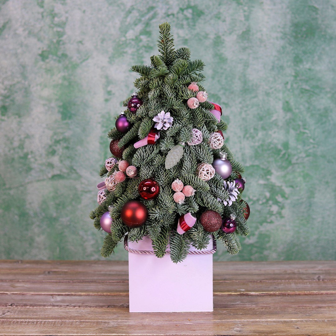 Новогодняя ёлочка из натуральной хвои с авторским декором на заказ. На фотографии елочка высотой 40-45 см.