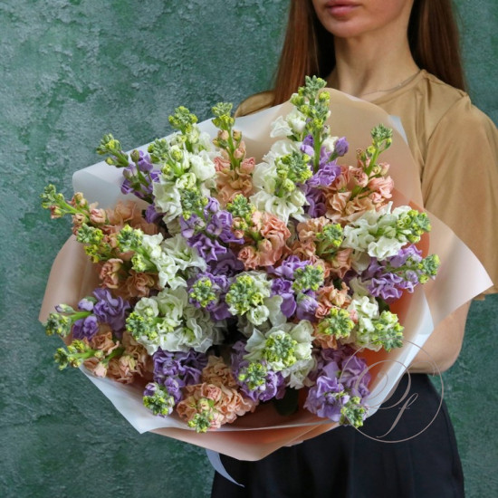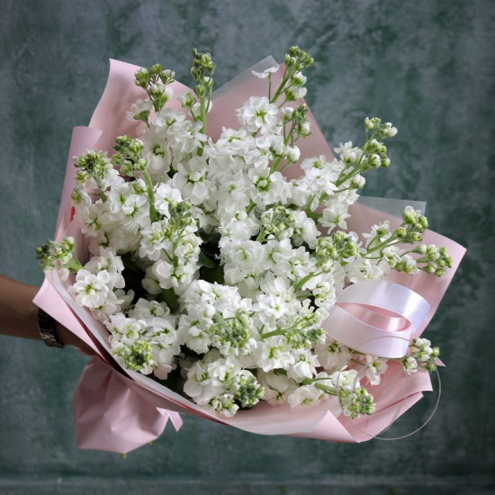 Маттиола букет купить с доставкой в Москве. Душистые цветы маттиолы бывают разного цвета, на одном стебле собрано множество соцветий, цветок невероятно ароматный. Вы можете выбрать любое количество цветов указанное в перечне к данному букету.
