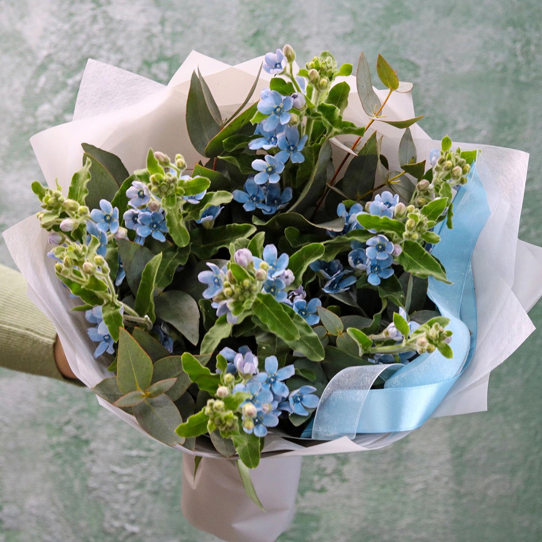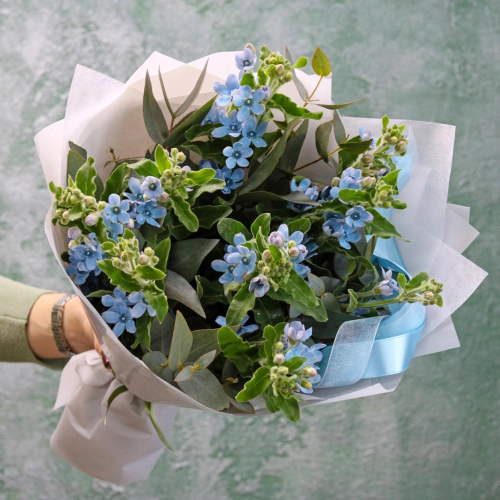 Букет из голубых цветов оксипеталума. Вы можете выбрать любое количество цветов указанное в перечне к данному букету.