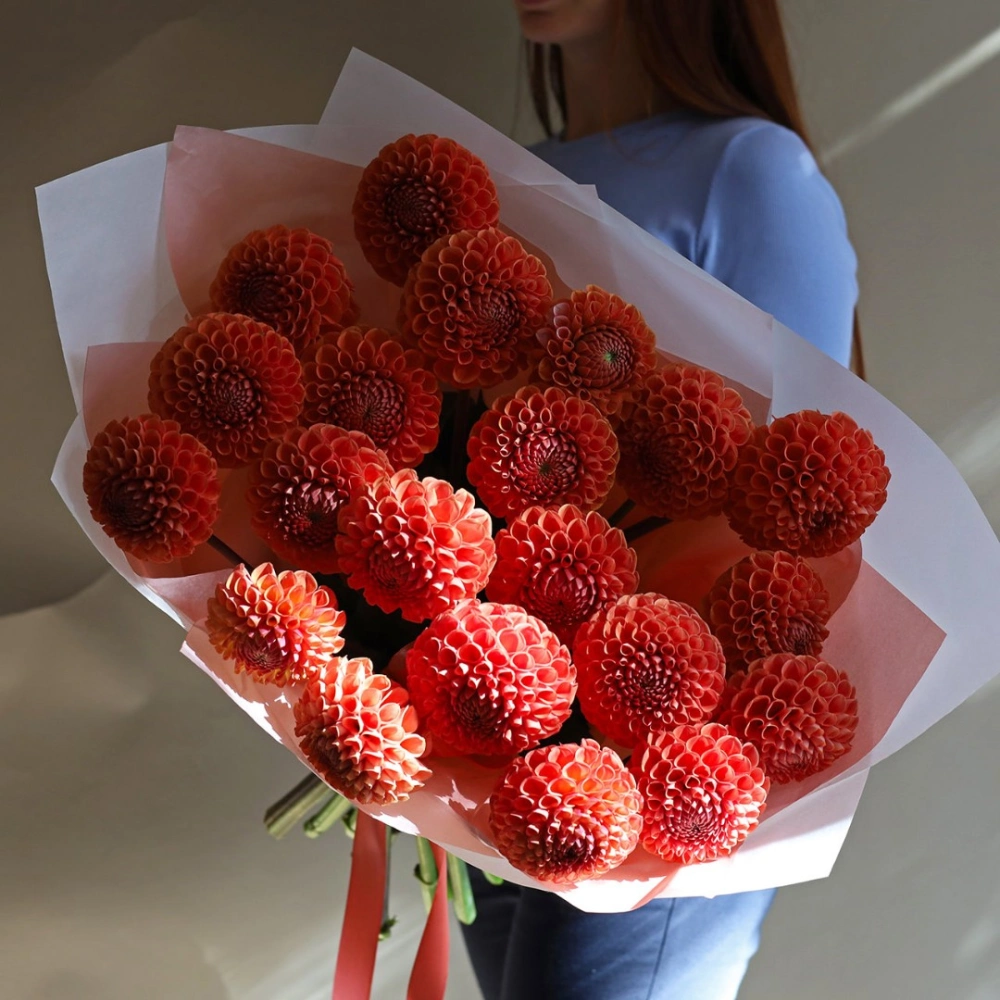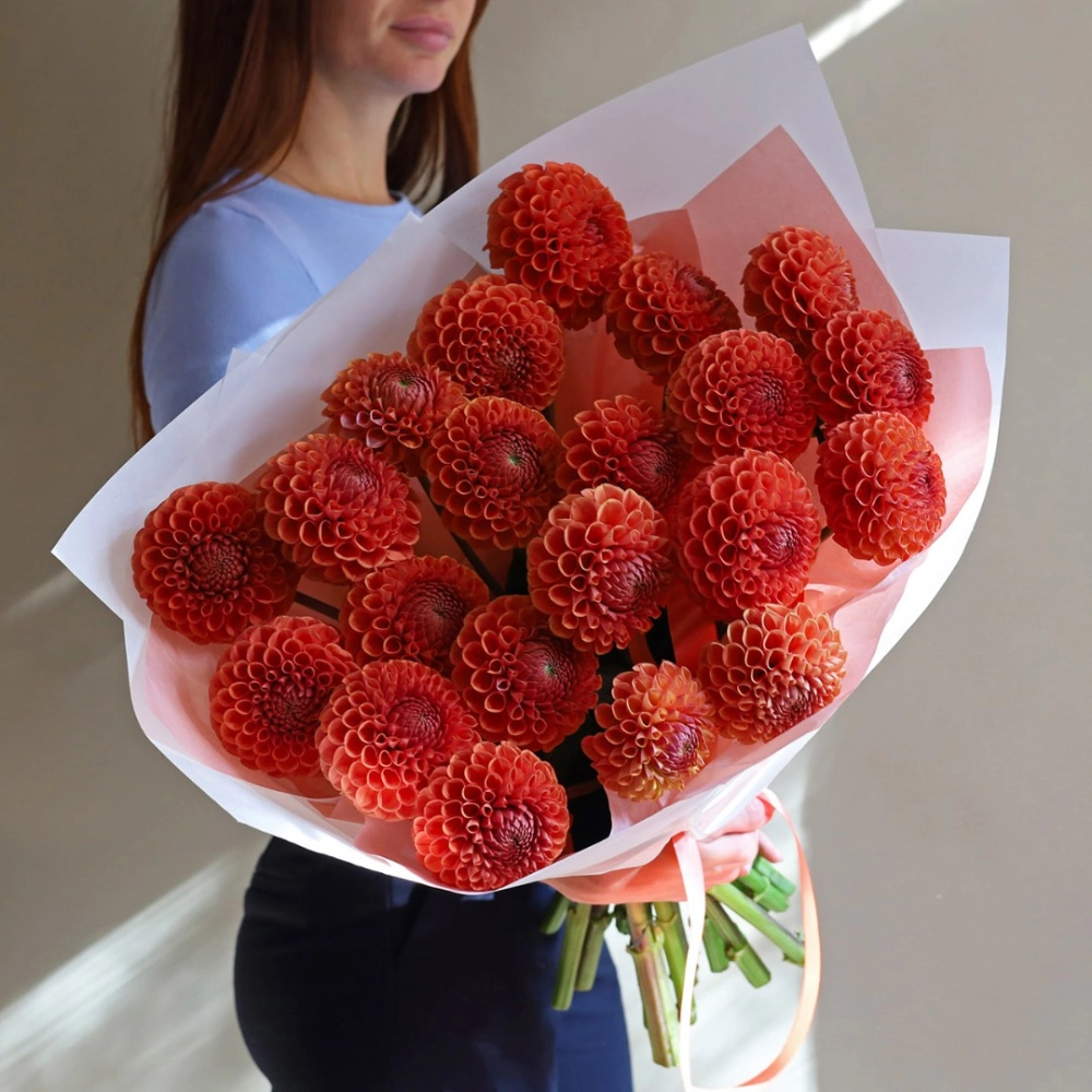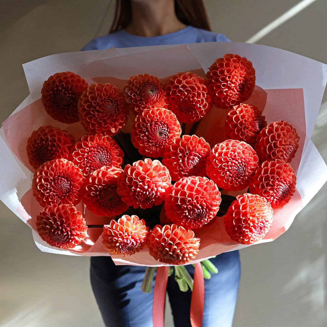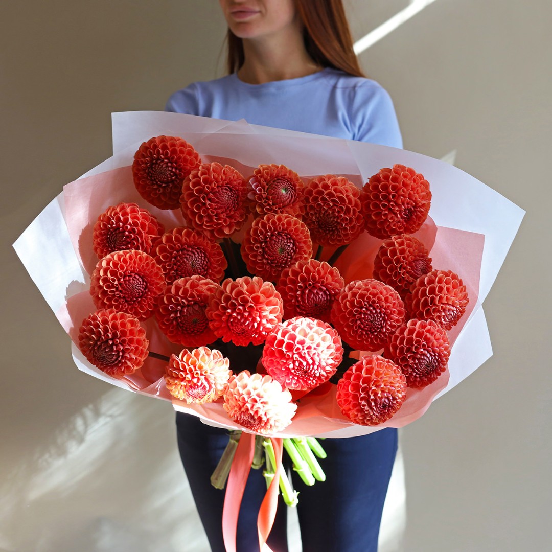 Букет из оранжевых Георгин. Вы можете выбрать любое количество цветов указанное в перечне к данному букету.