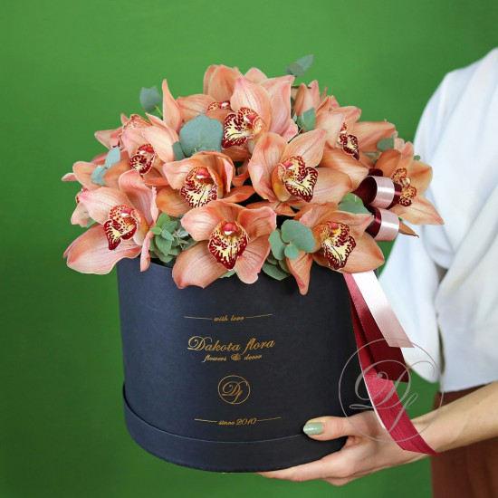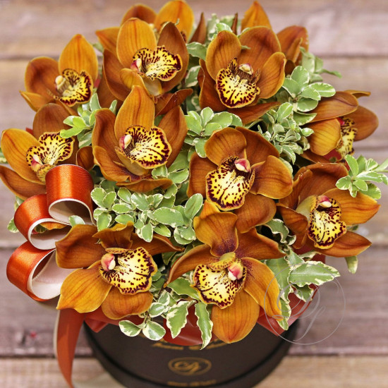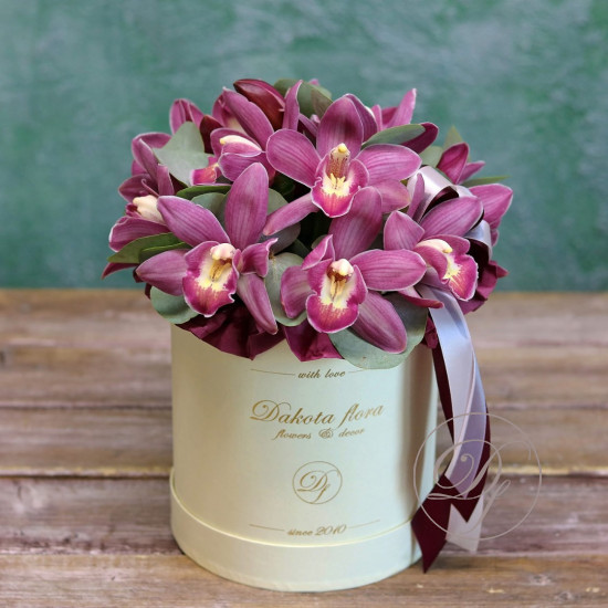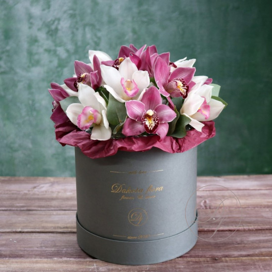 Цветы в коробках это композиции, составленные с использованием специальной губки Oasis (пиафлор) которая пропитана водой. Для того чтобы цветы дольше оставались свежими, добавляйте в нее немного воды каждый день.