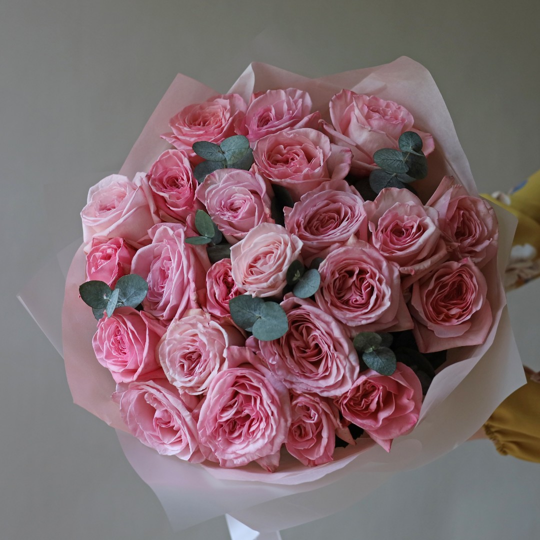 Букет из роз Пинк Охара и эвкалипта