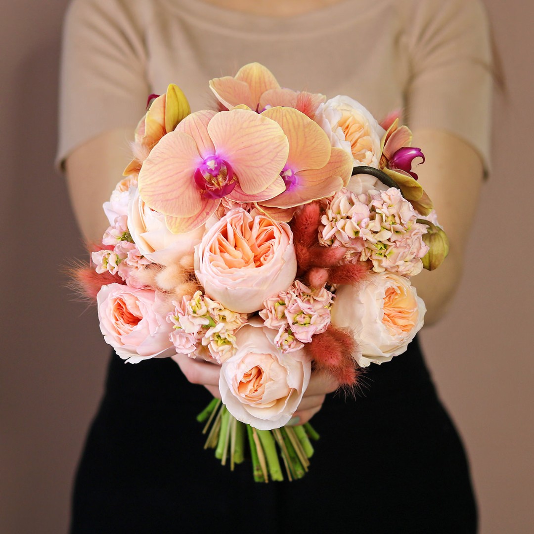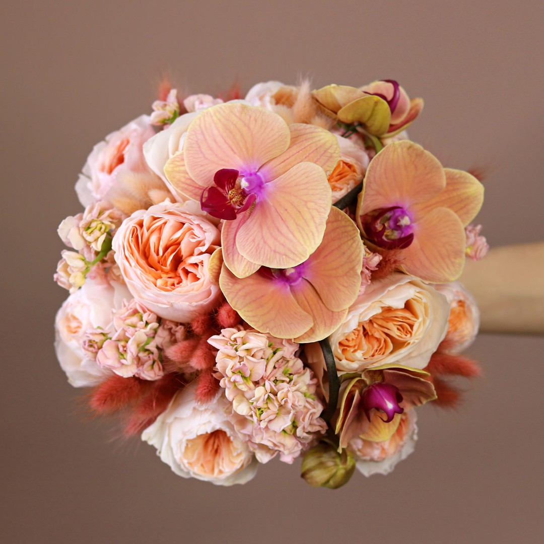 Пионовидные розы и орхидея