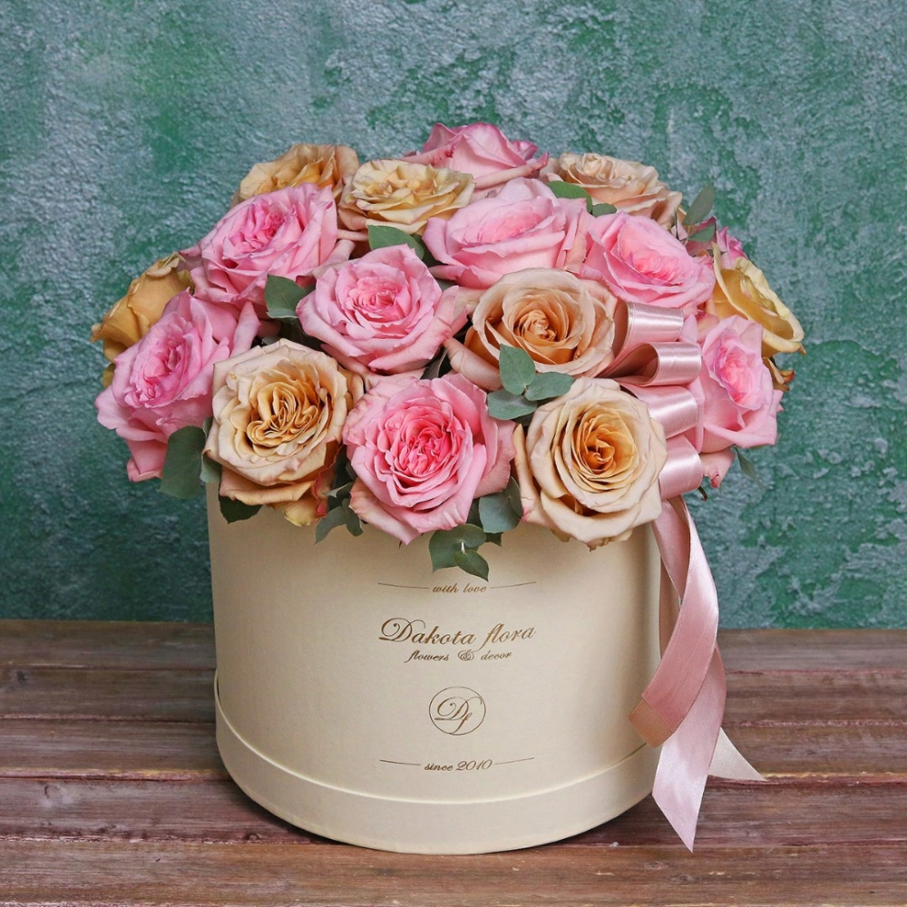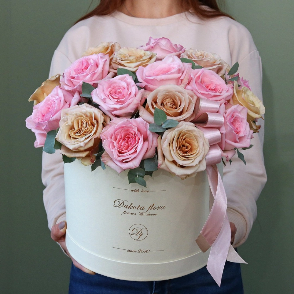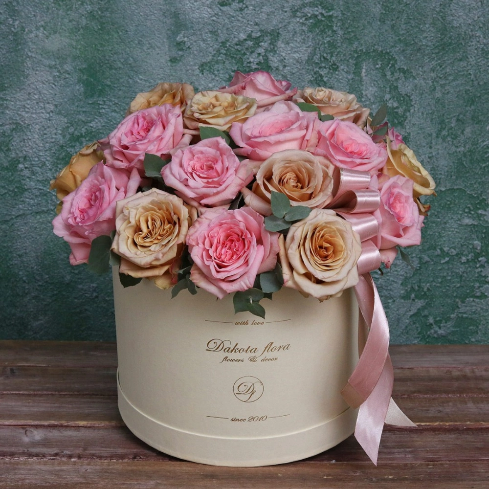 Пионовидные розы в коробке. Пионовидные розы купить. Цветы в коробках это композиции, составленные с использованием специальной губки Oasis (пиафлор) которая пропитана водой. Для того чтобы цветы дольше оставались свежими, добавляйте в нее немного воды каждый день.