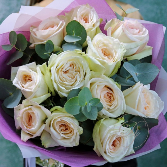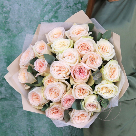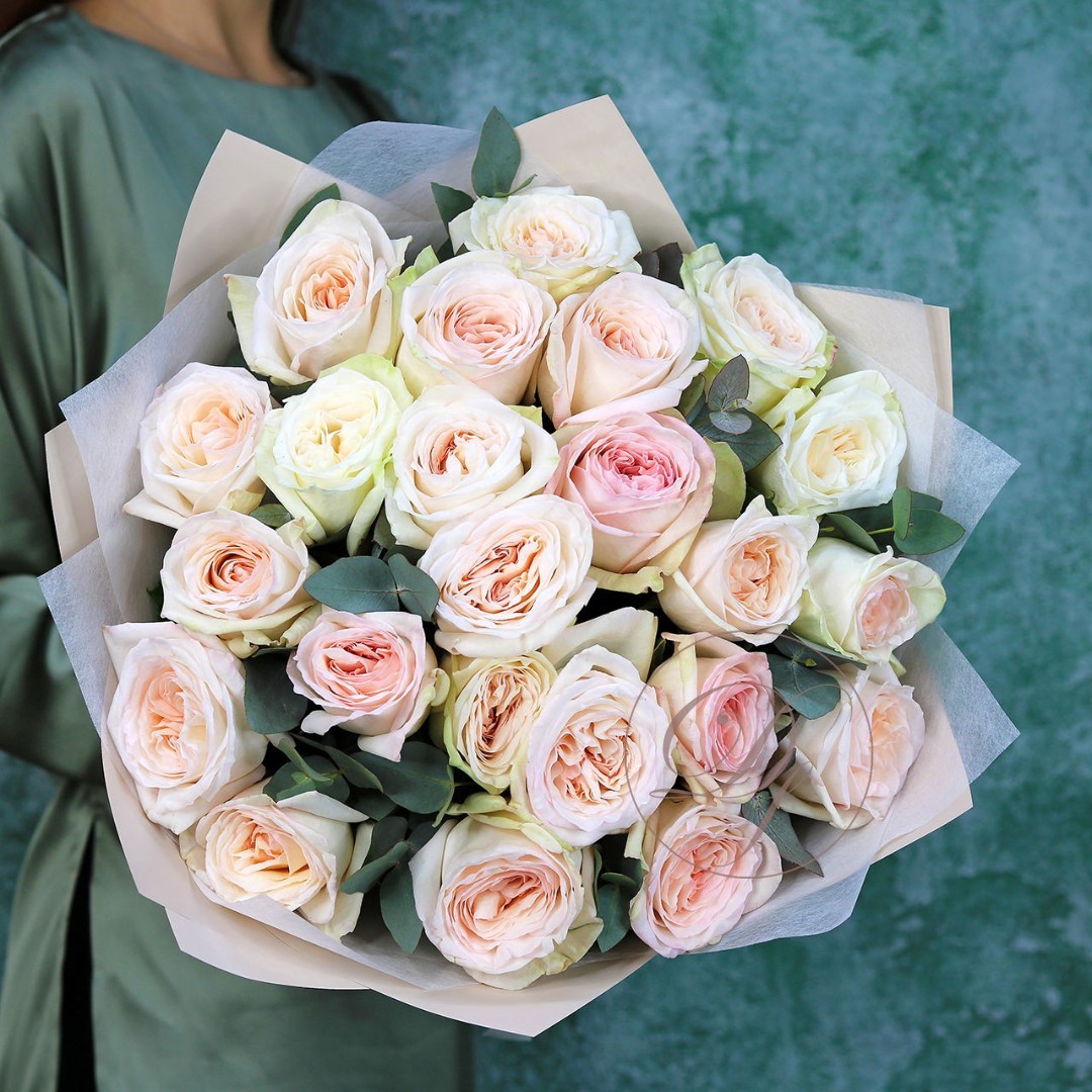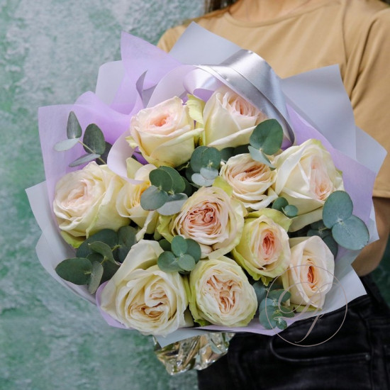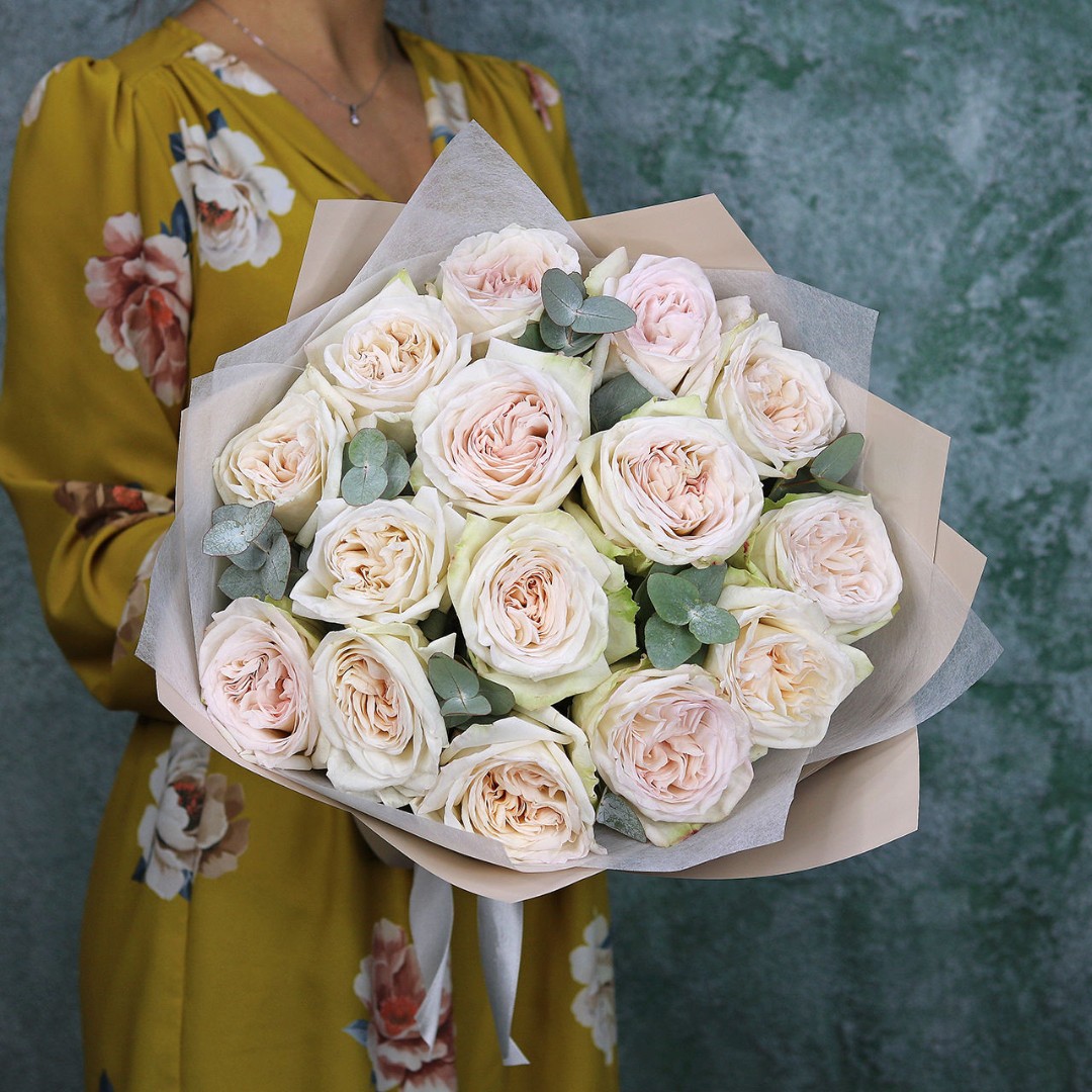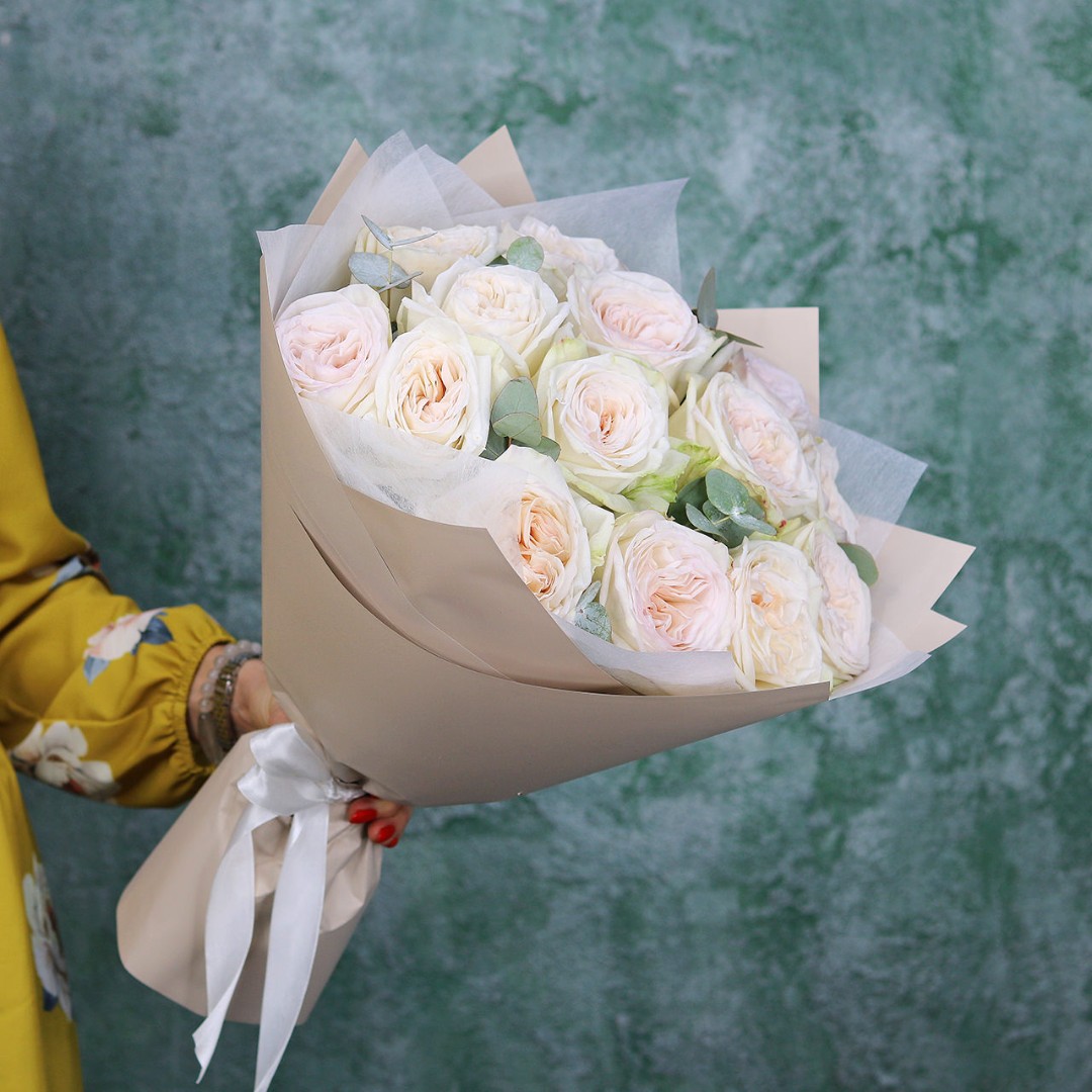 Букет из пионовидных роз сорта Вайт Охара. Вы можете выбрать любое количество цветов указанное в перечне к данному букету.