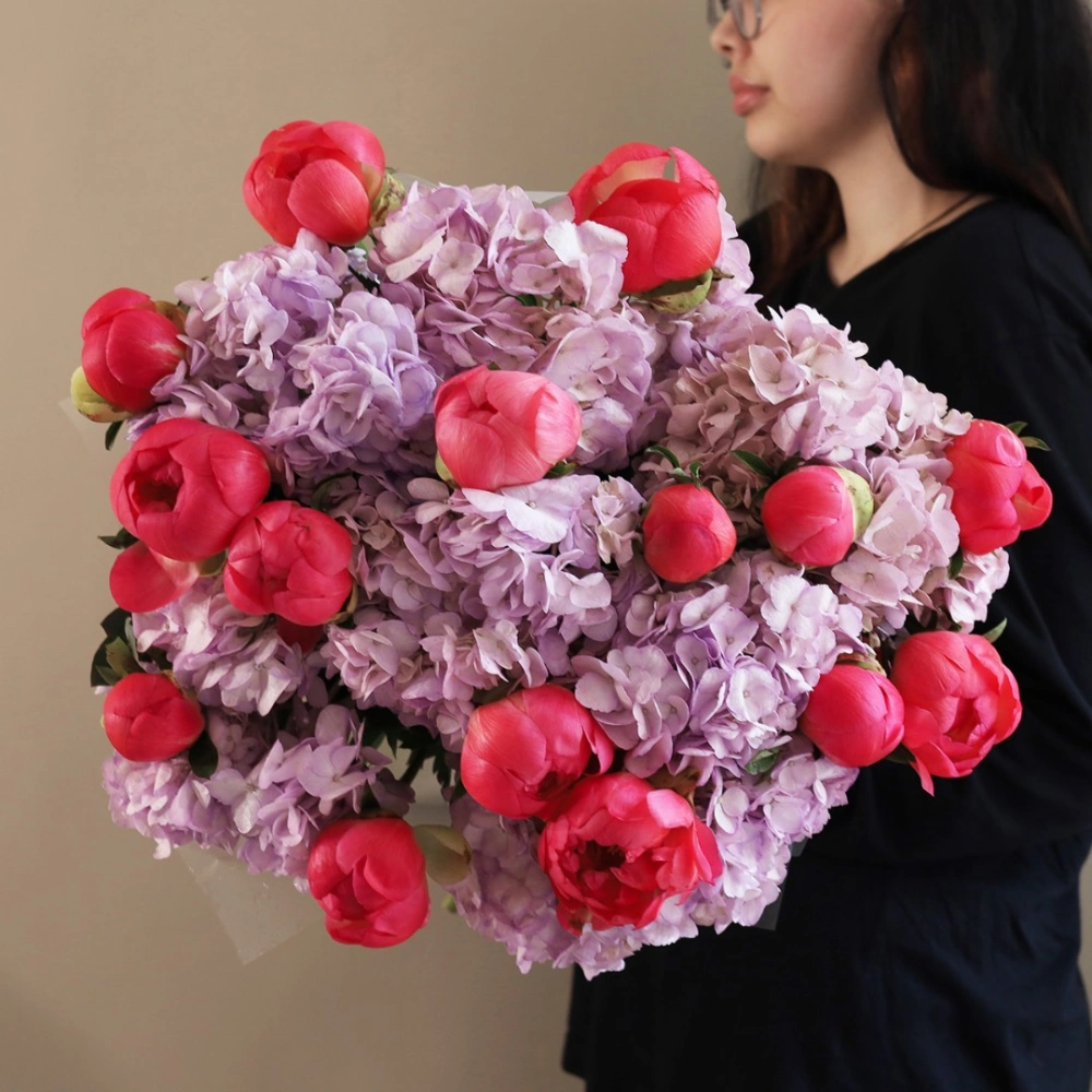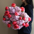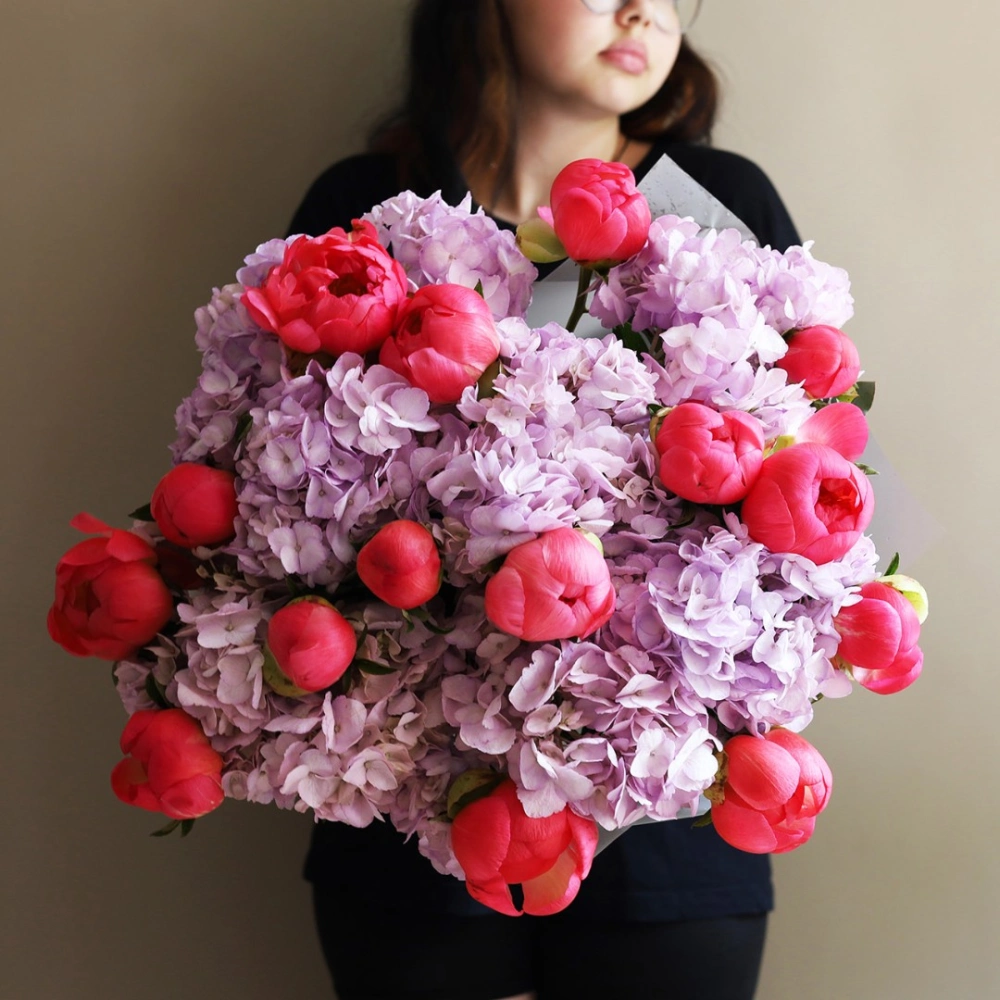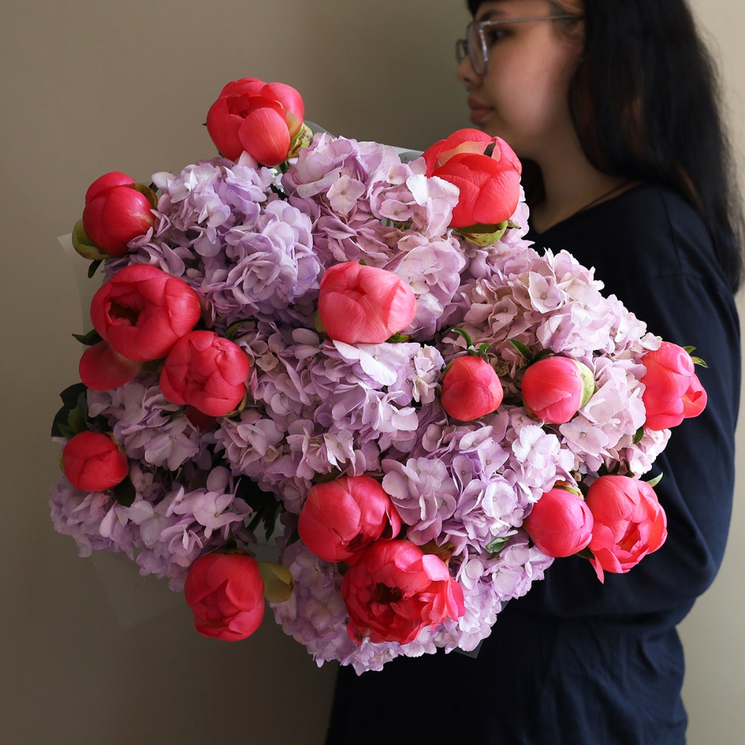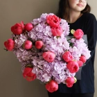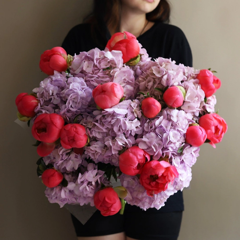 Пионы Корал Шарм с гортензией